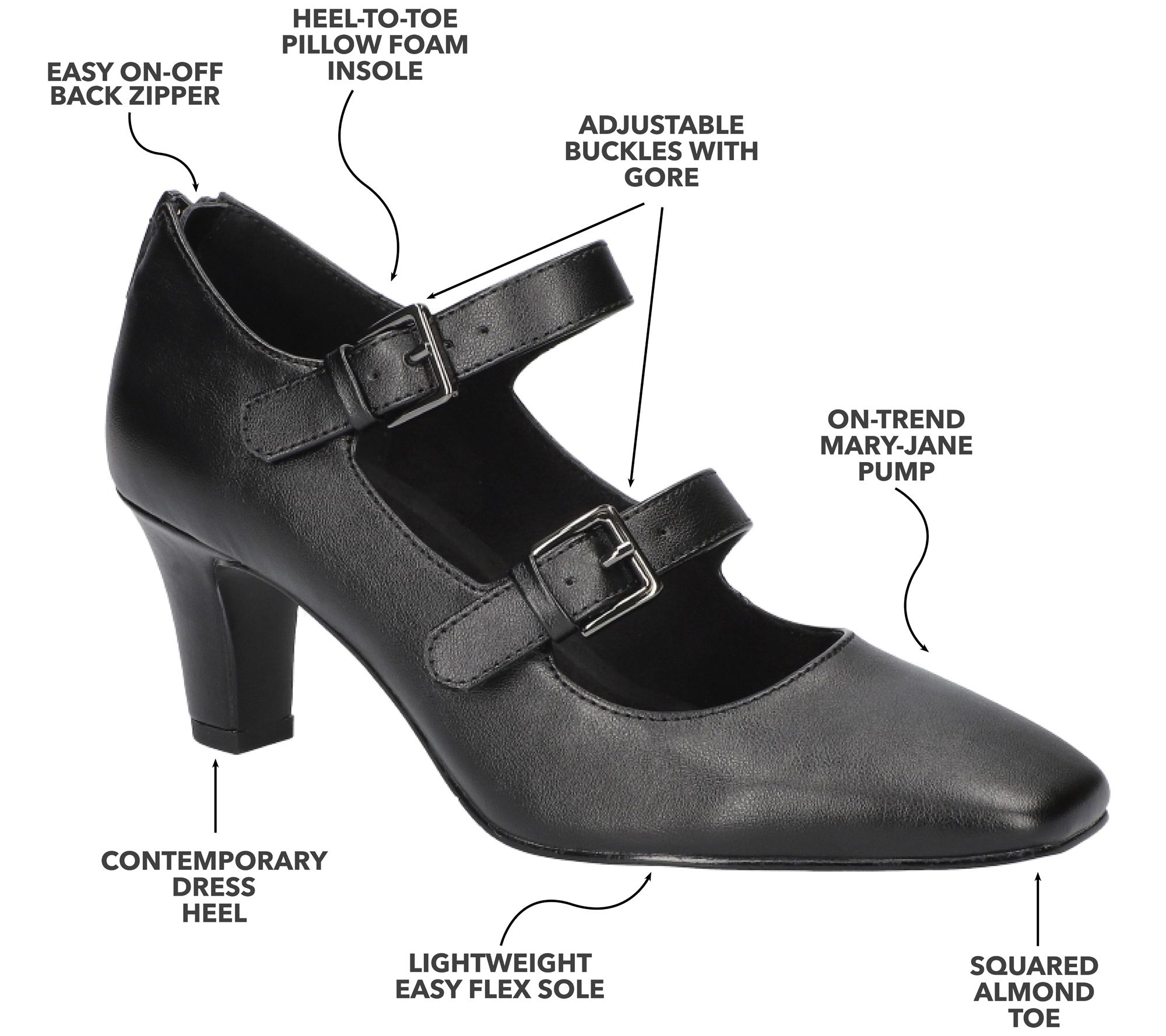 Elevate your wardrobe with these statement-making Mary Jane pumps. The addition of a back zipper ensures easy on and off, while the Easy Flex outsole and padded insole help ensure all-day comfort. From Easy Street.