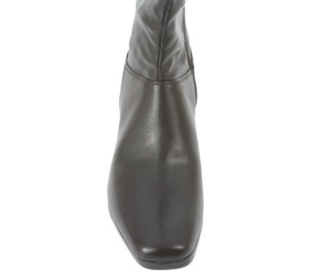 Stay smooth. Perfect for pairing with jeans or a skirt, these pull-on boots feature a full-length inner zipper for easy wear--not to mention a seamless, sleek look. From Easy Street.