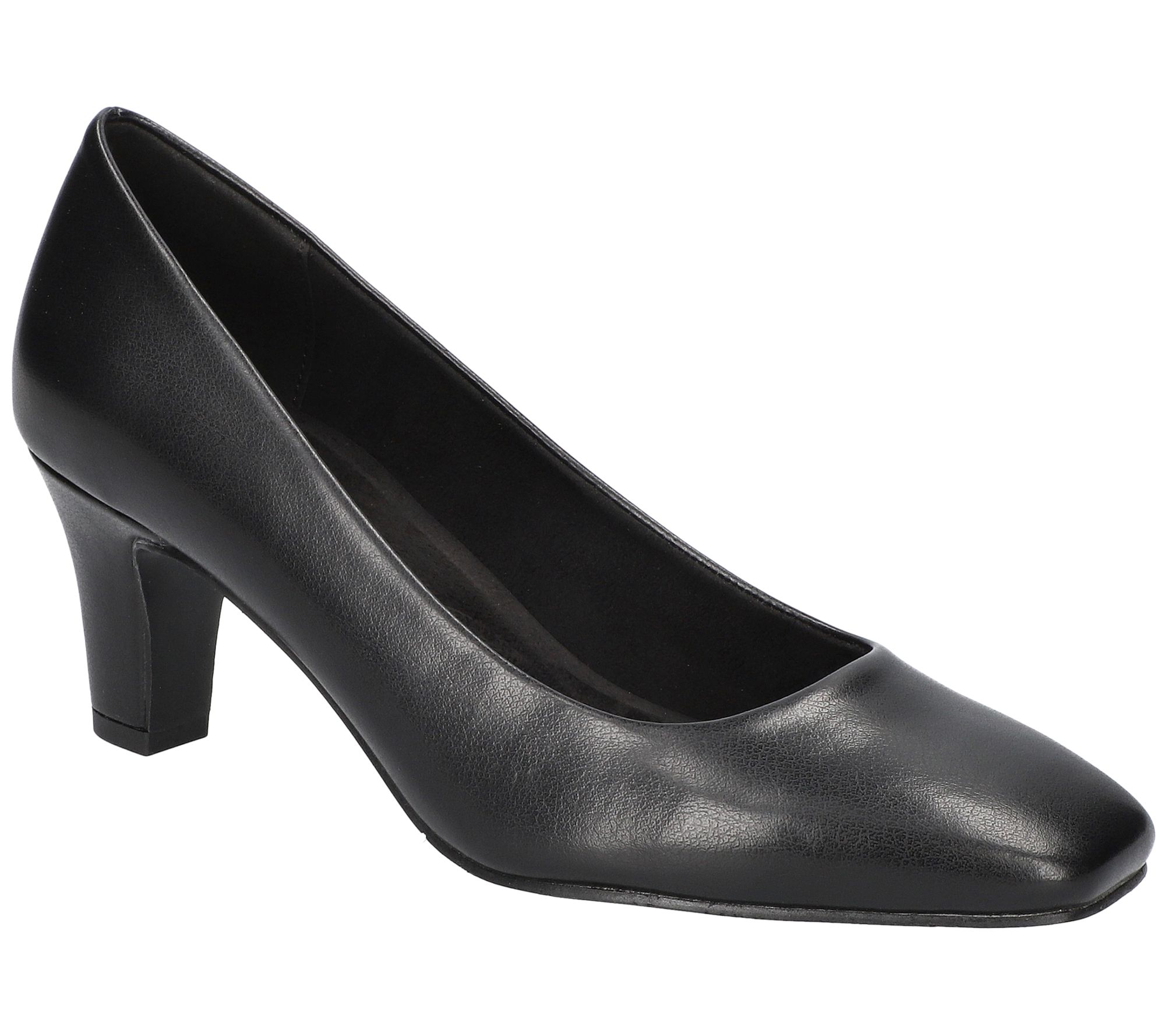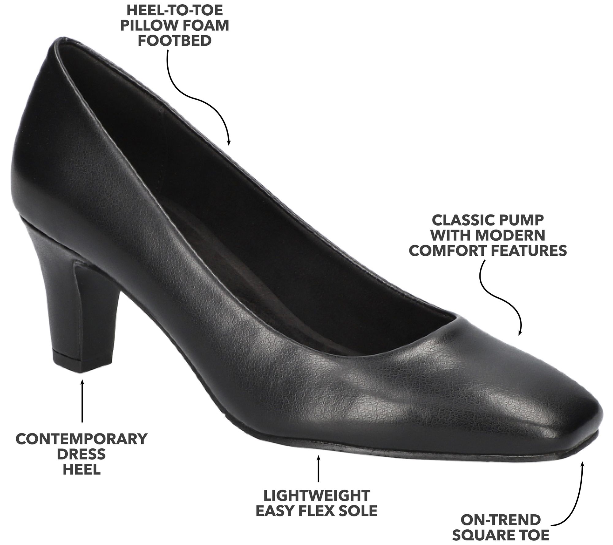 Instant elegance. These chic pumps feature a timeless square toe and a comfortable, cushioned footbed, making them perfection for both dressy office days and evening events. From Easy Street.