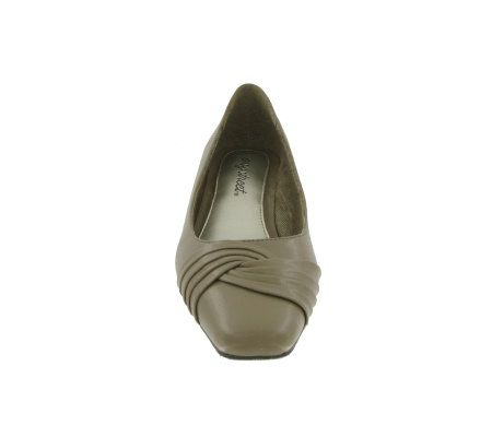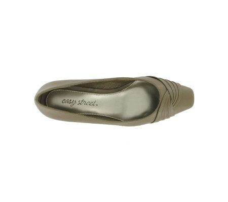Office approved. A low stylized heel lets these pumps give legs a lift without veering into teetering territory. A gathered overlay lends visual interest above the toe. From Easy Street.