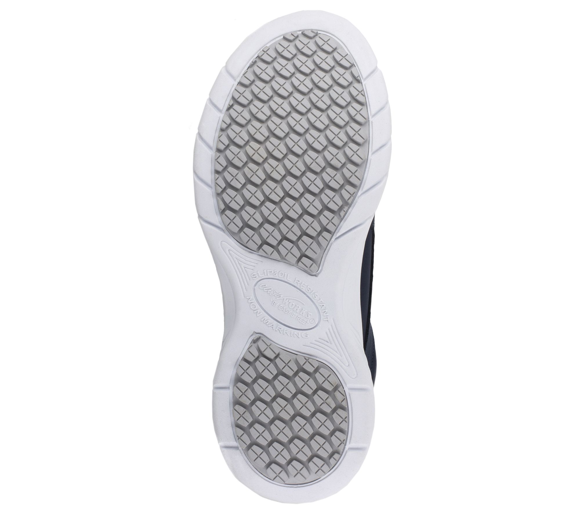 • Molded footbed with arch support; slip- and oil-resistant, shock-absorbing, textured outsole