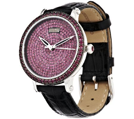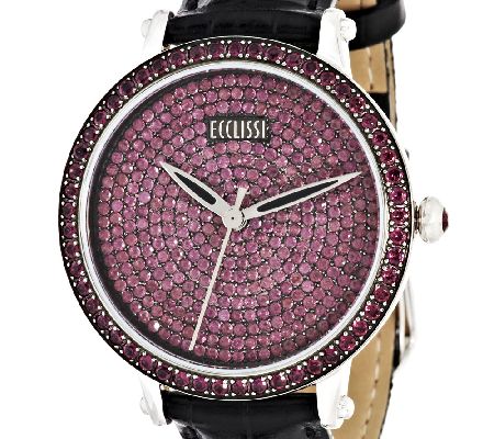 Go ahead, keep checking your watch. With the spectacular sparkle of this striking Ecclissi timepiece, you won't want to take your eyes off it. Round pave-set garnet gemstones dazzle on the dial, while even more garnets create a halo on the bezel. A croco-embossed leather strap bring this lofty look back down to earth. From Ecclissi.