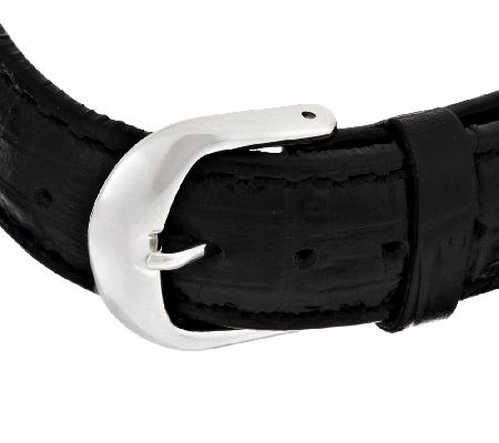Croco-embossed black cowhide leather strap with stainless steel buckle