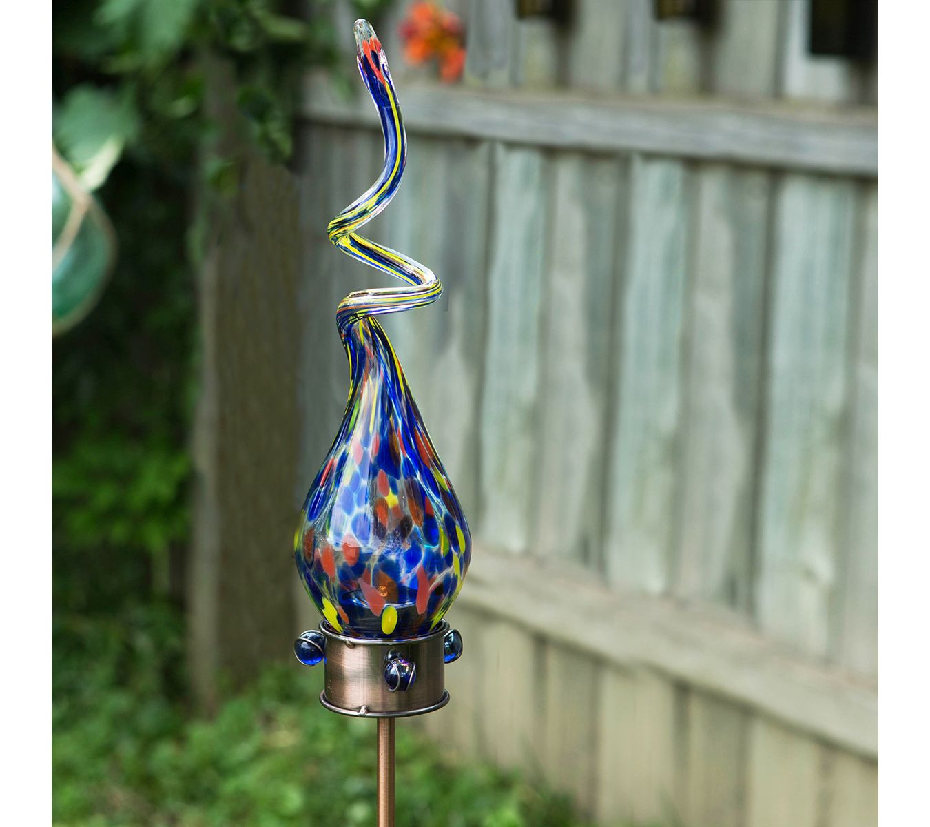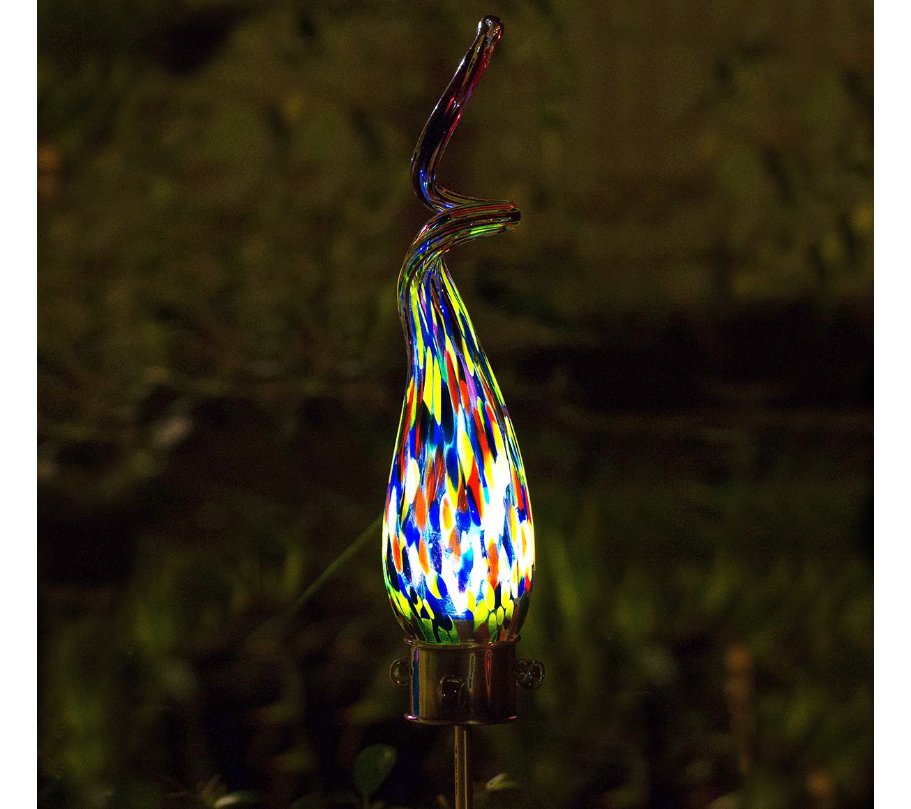 Add a unique twist of radiance to your garden with this LED solar lighted glass swizzle stake, beautiful day and night. From Echo Valley.