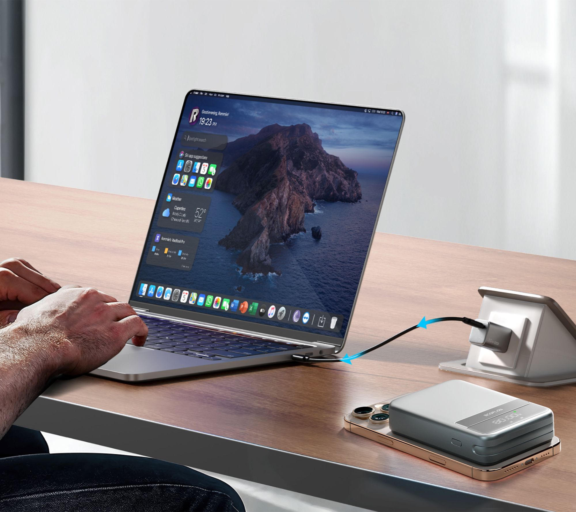 Fuel your device fast with Ecoflow's RAPID magnetic power bank and GaN charger. Paired with Qi2 wireless charging and a built-in cable design, RAPID provides snap-on charging convenience with maximum charging speeds. Thanks to its compact design and foldable plug, it's just as happy to help you out on the go as it is at home. From Ecoflow.