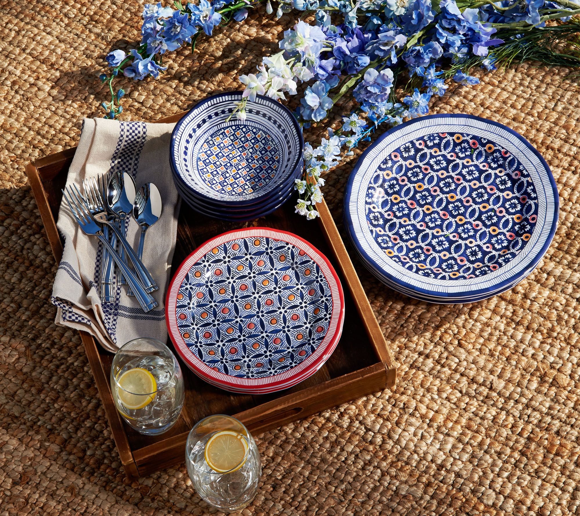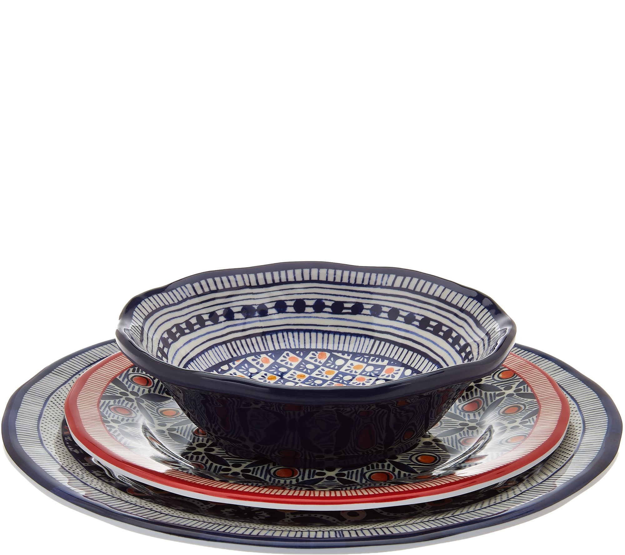 Spice up your dining space with the bold beauty of this 12-piece dinnerware set by Ellen DeGeneres. Constructed out of melamine for indoor or outdoor use, these plates and bowls dish out a positively modern presentation with the look and feel of ceramic. From ED On Air by Ellen DeGeneres.