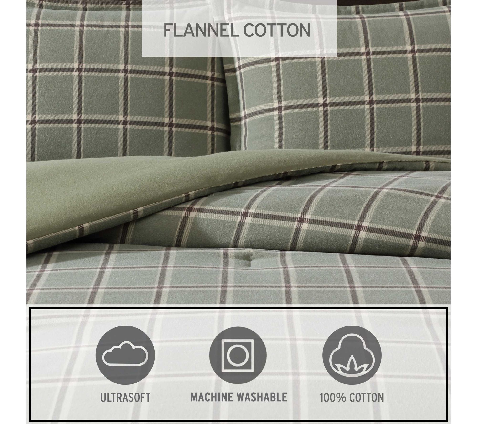 Transform your bedroom into a cozy retreat with this flannel comforter set, featuring a signature rustic plaid design that brings warmth and classic charm to your space. The brushed cotton flannel and lofty fill offer plush comfort for restful nights, while the inviting pattern creates a welcoming, lodge-inspired atmosphere you'll love to come home to. From Eddie Bauer.