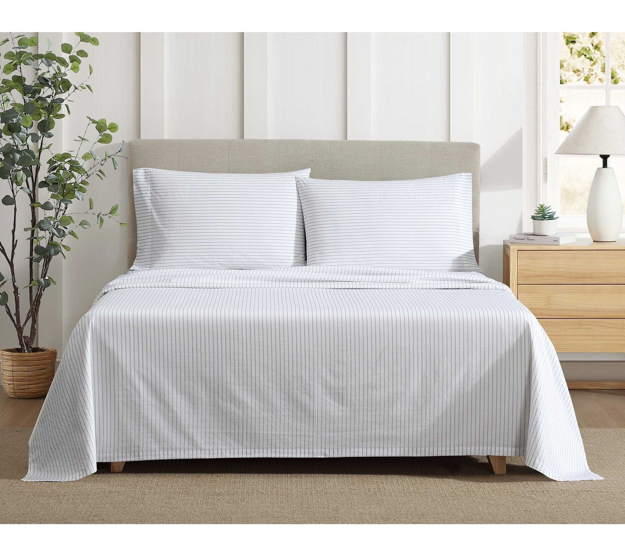 Refreshing your bedroom is easy with this Eddie Bauer Arden Stripe sheet set, where soft 100% cotton percale wraps you in crisp comfort each night. The classic striped design blends industrial charm with modern elegance, making it ideal for updating your space with a sophisticated touch. Its easy-care fabric keeps laundry day simple, so you can enjoy effortless style and comfort. From Eddie Bauer.