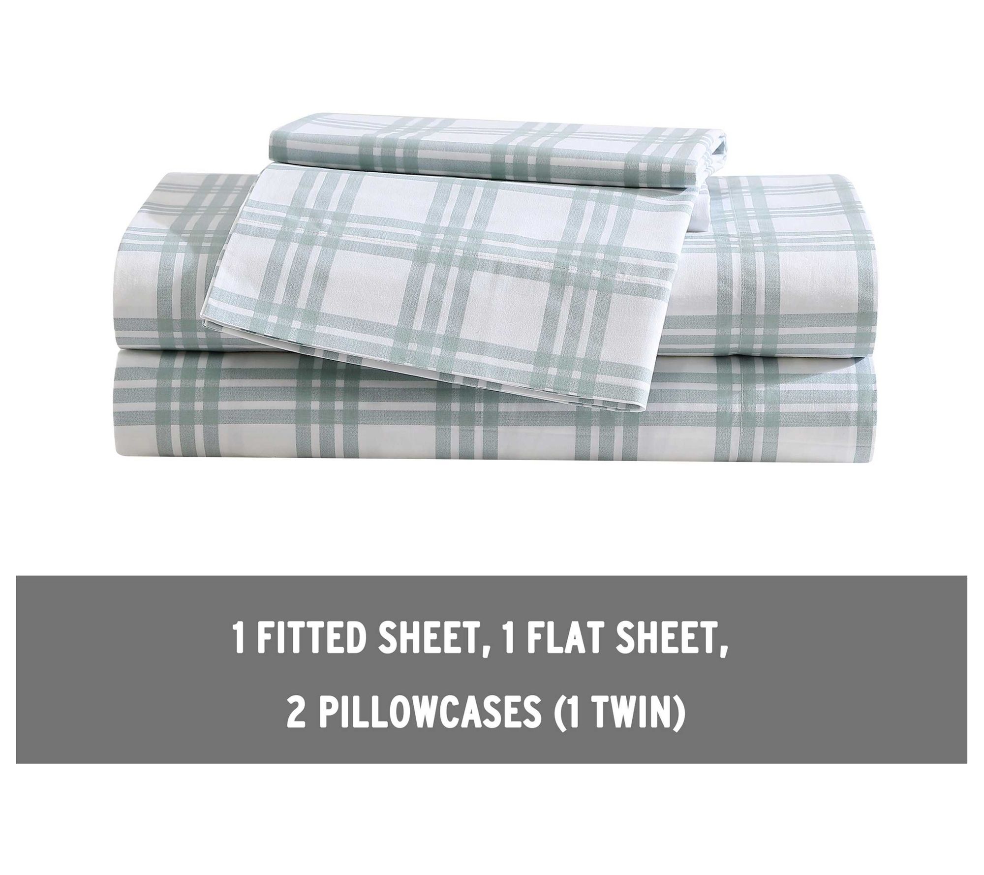 • Includes flat sheet, fitted sheet, and two pillowcases