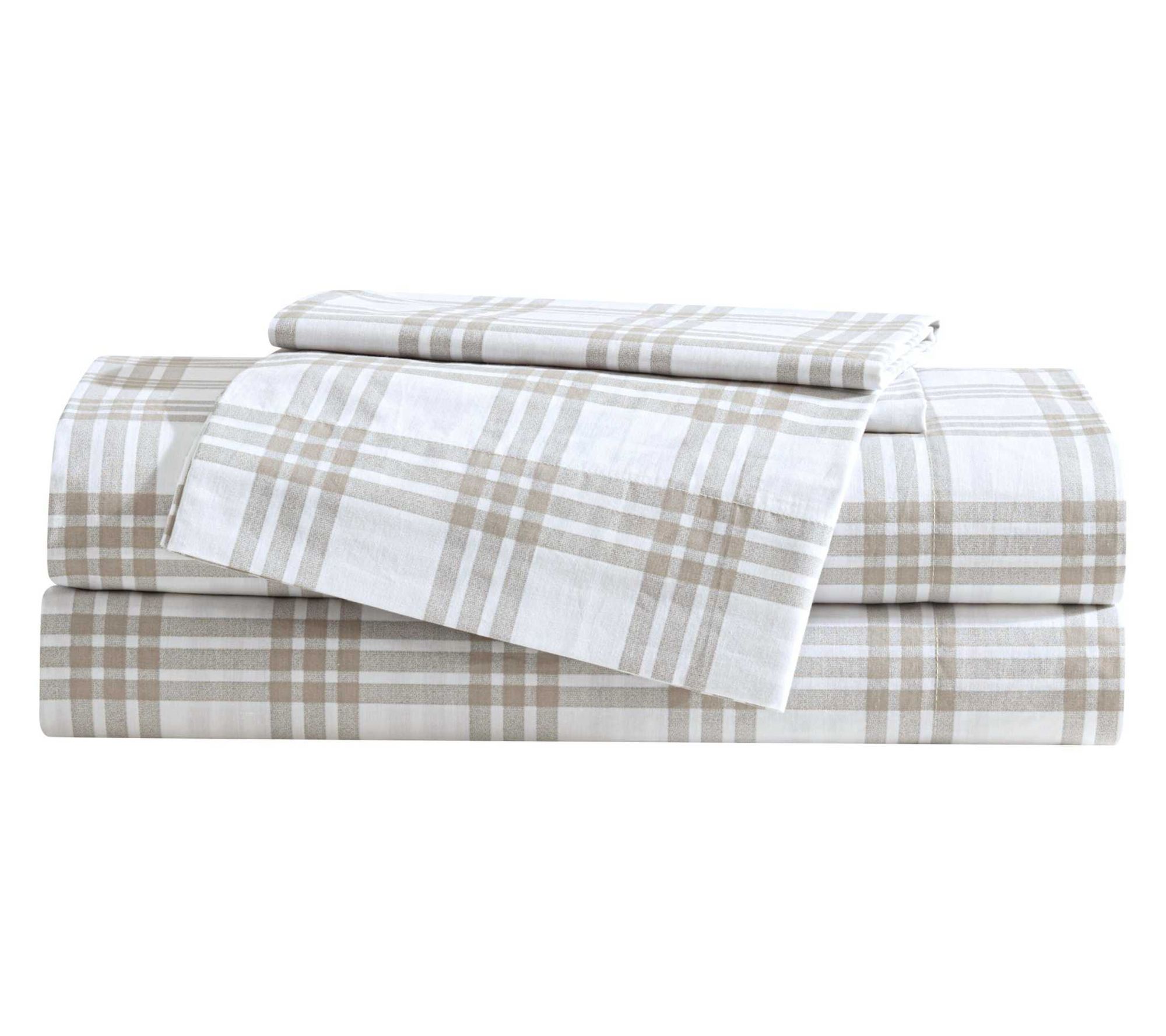 Bring a touch of classic charm to your bedroom with this Eddie Bauer full sheet set, featuring a basic plaid pattern in white and saddle beige. Made from 100% cotton, this set delivers a crisp and breathable feel for a comfy night's sleep. It's easy to maintain with machine-washable fabric and perfect for complementing your existing decor. From Eddie Bauer.