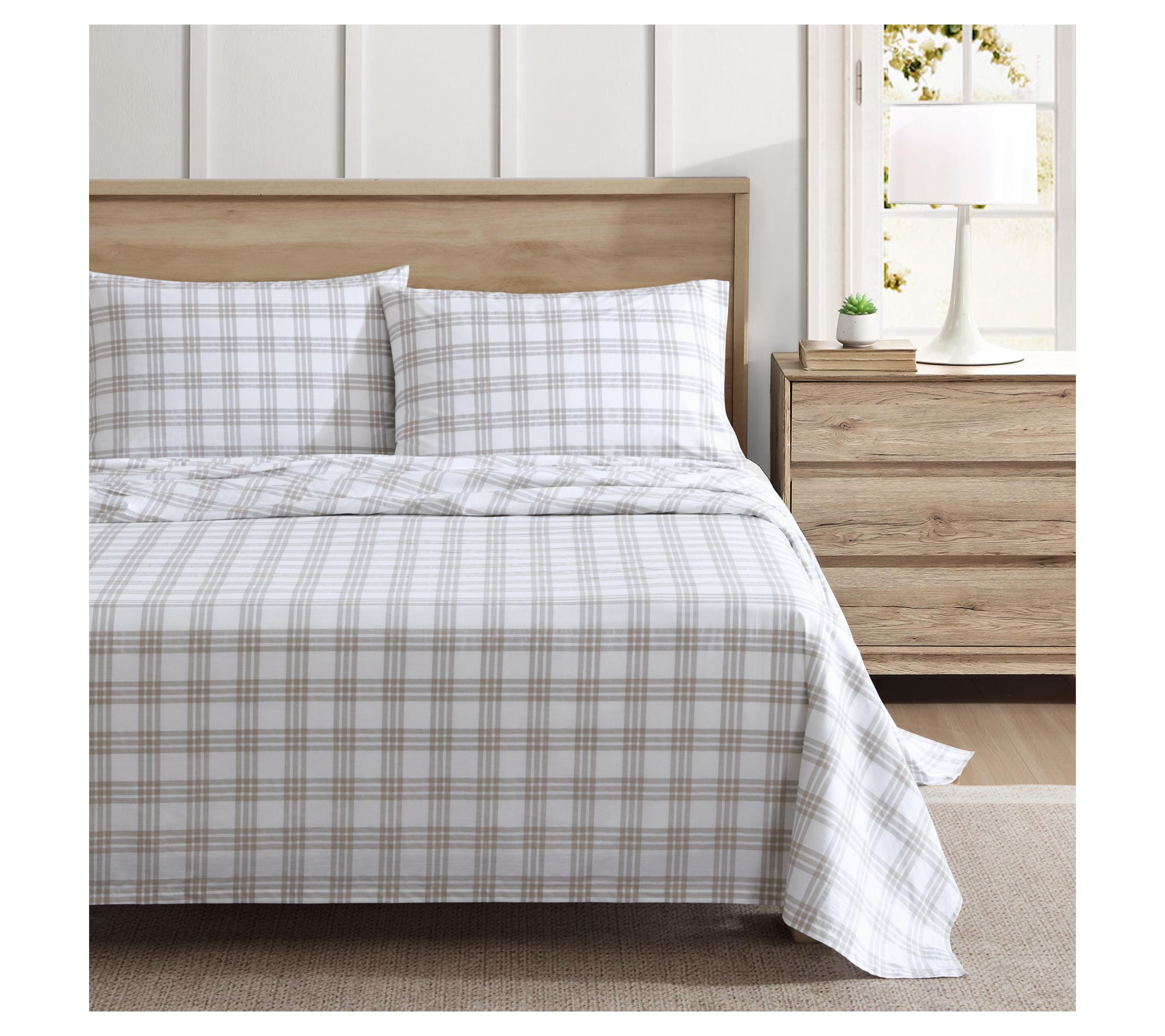 Eddie Bauer Basic Plaid White-Saddle Beige TwinSheet Set