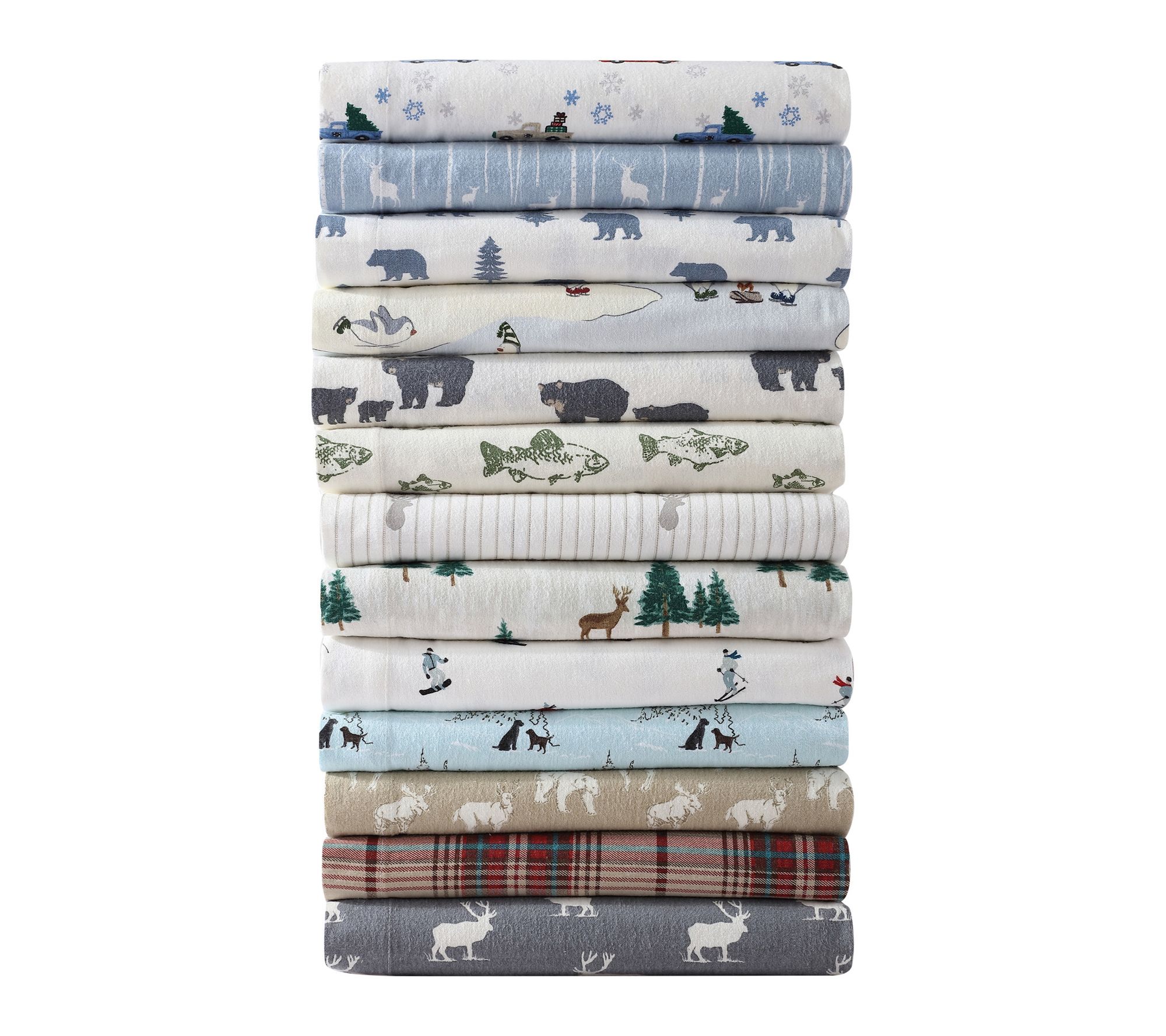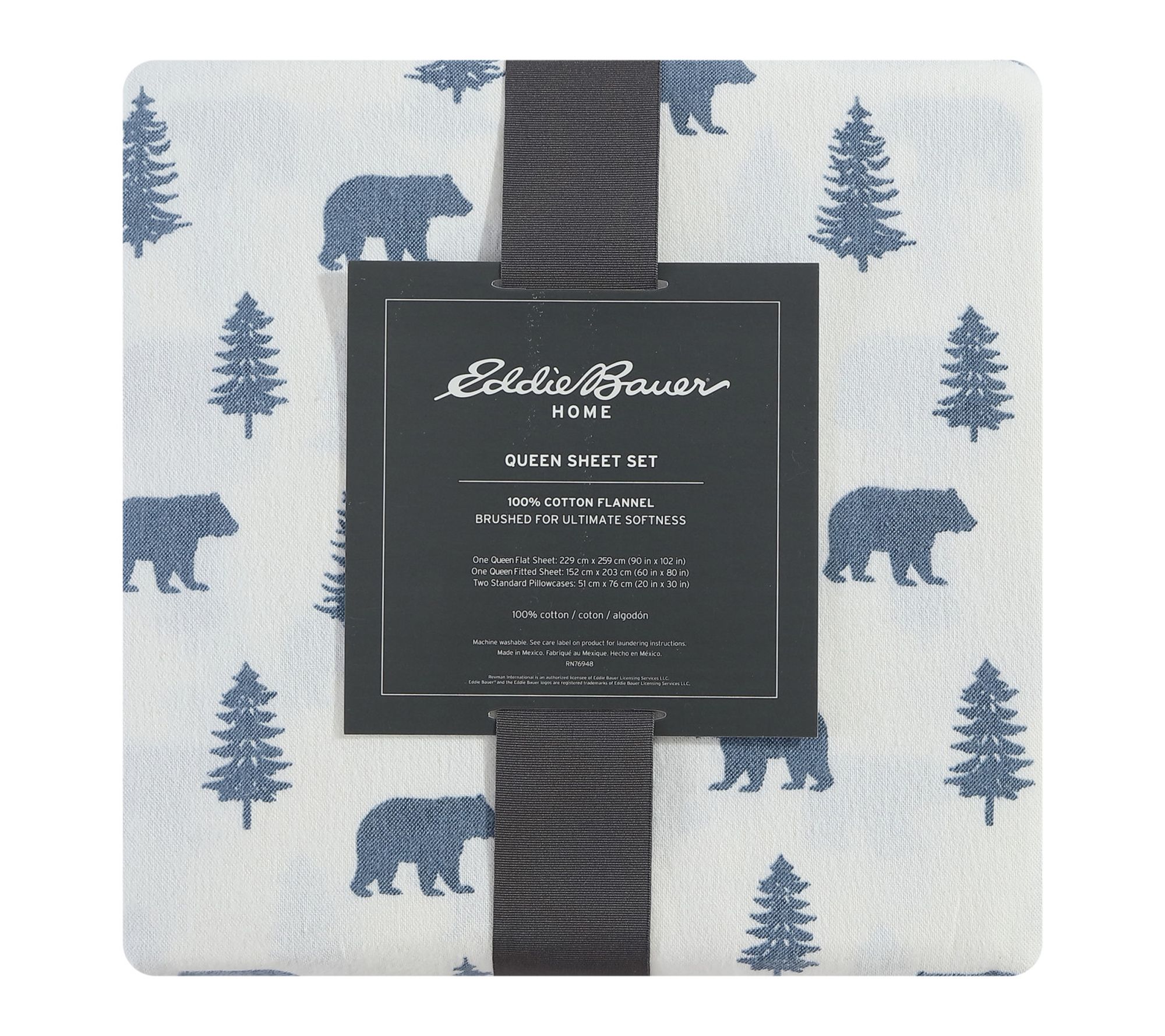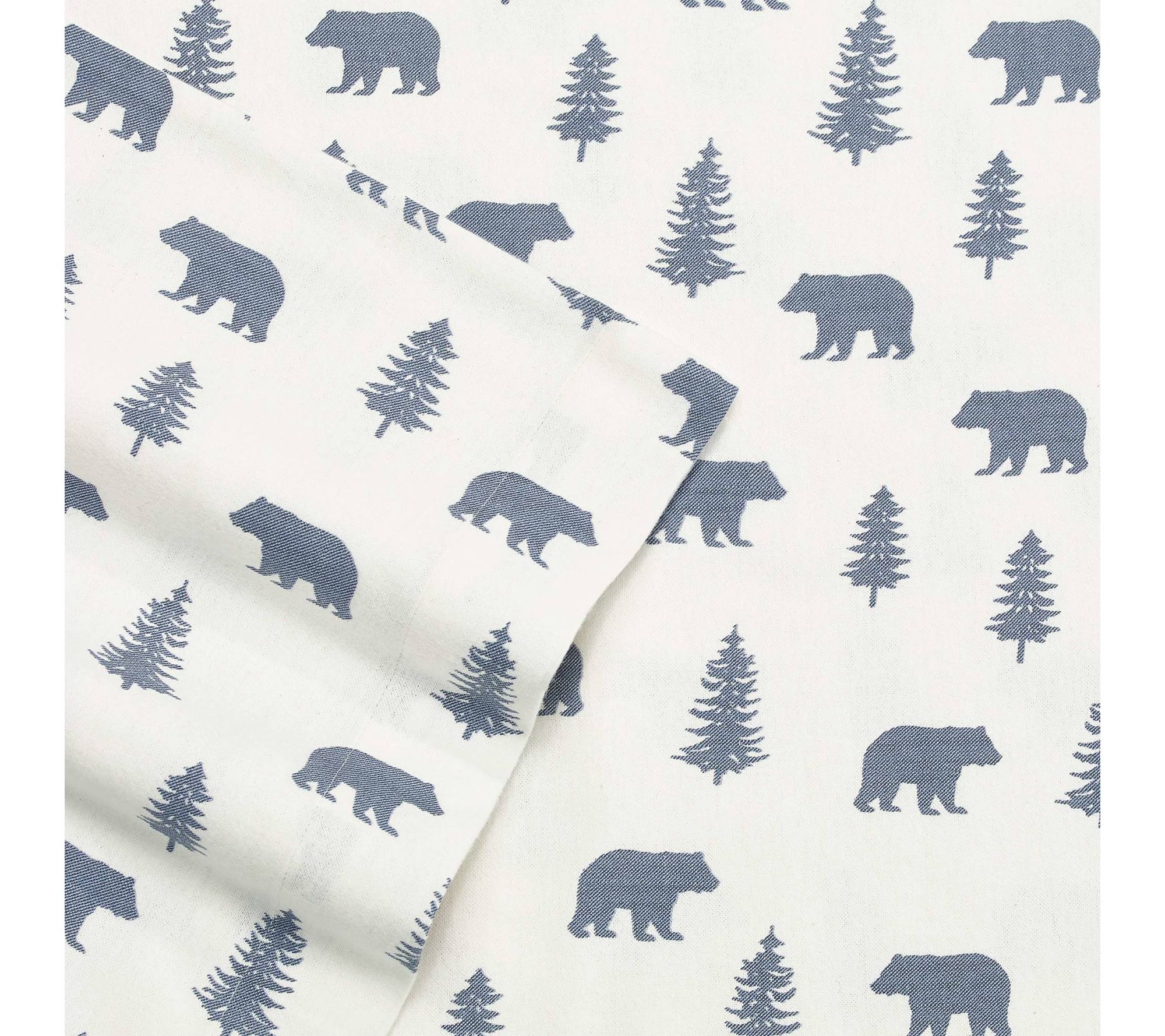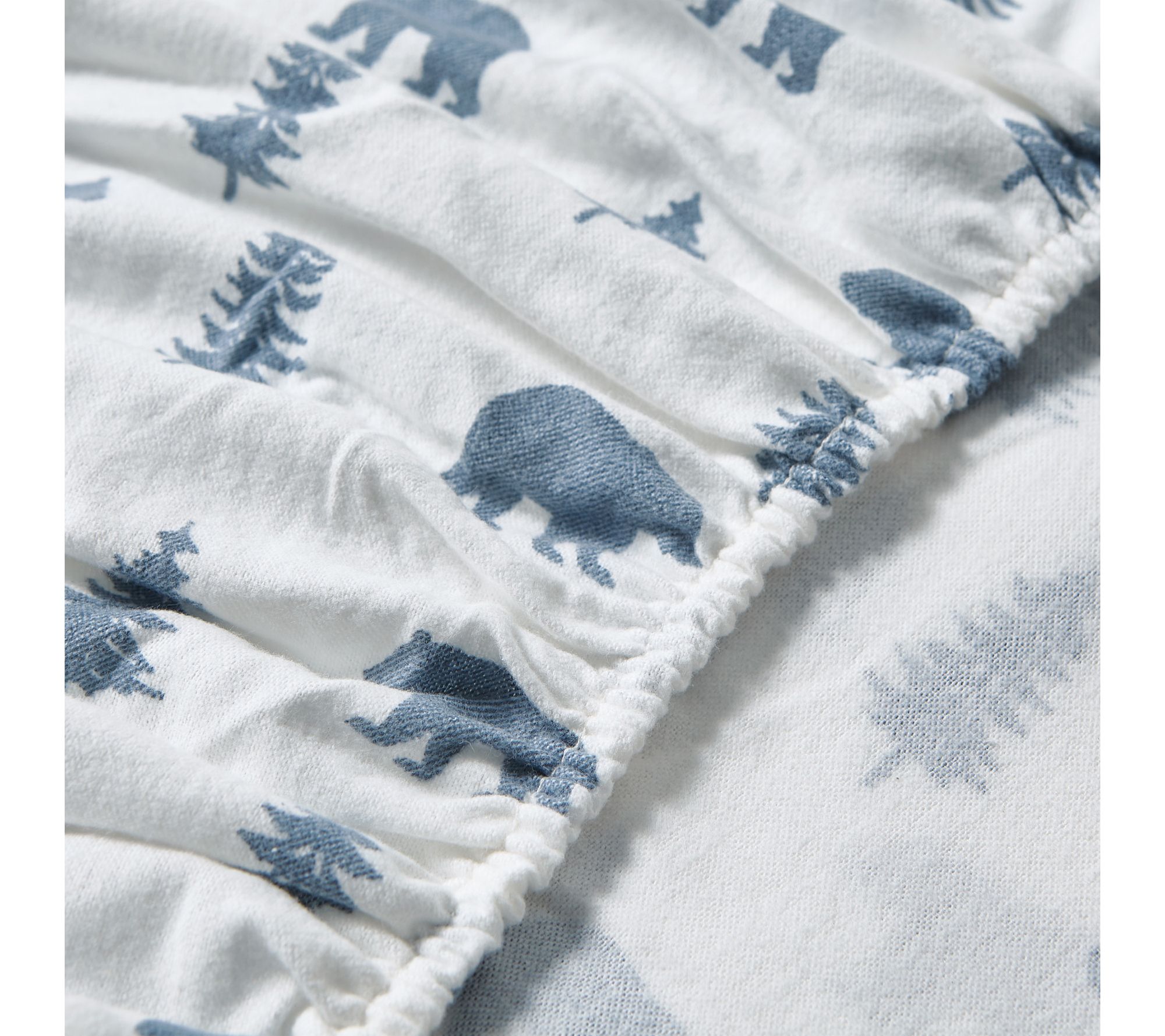 Cozy up for a restful night on these Eddie Bauer Bears and Trees Blue Cotton sheets, where playful patterns meet soft comfort. Crafted from 100% cotton and brushed for added warmth, they're ideal for chilly evenings and gentle enough to soften with every wash. From Eddie Bauer.