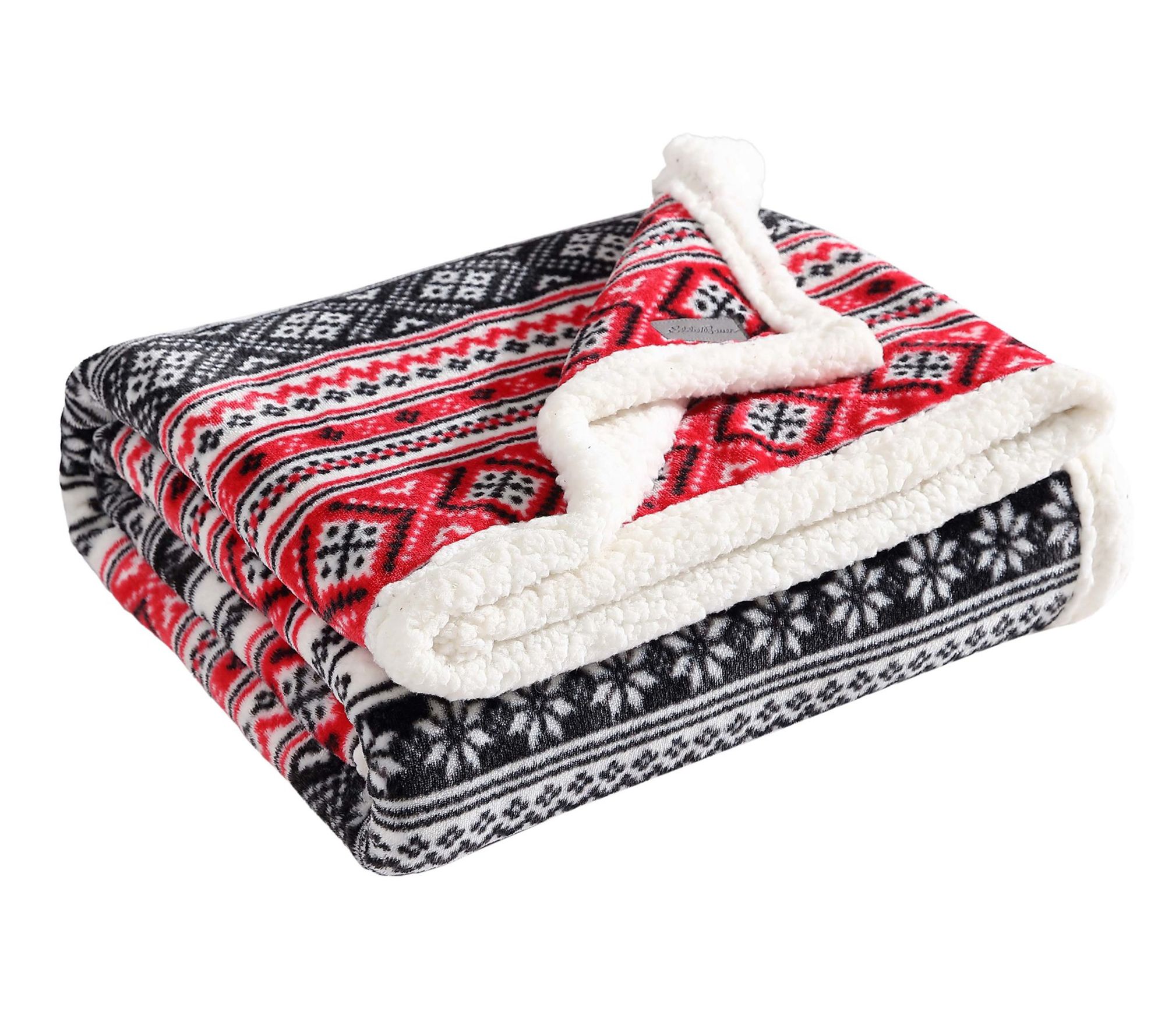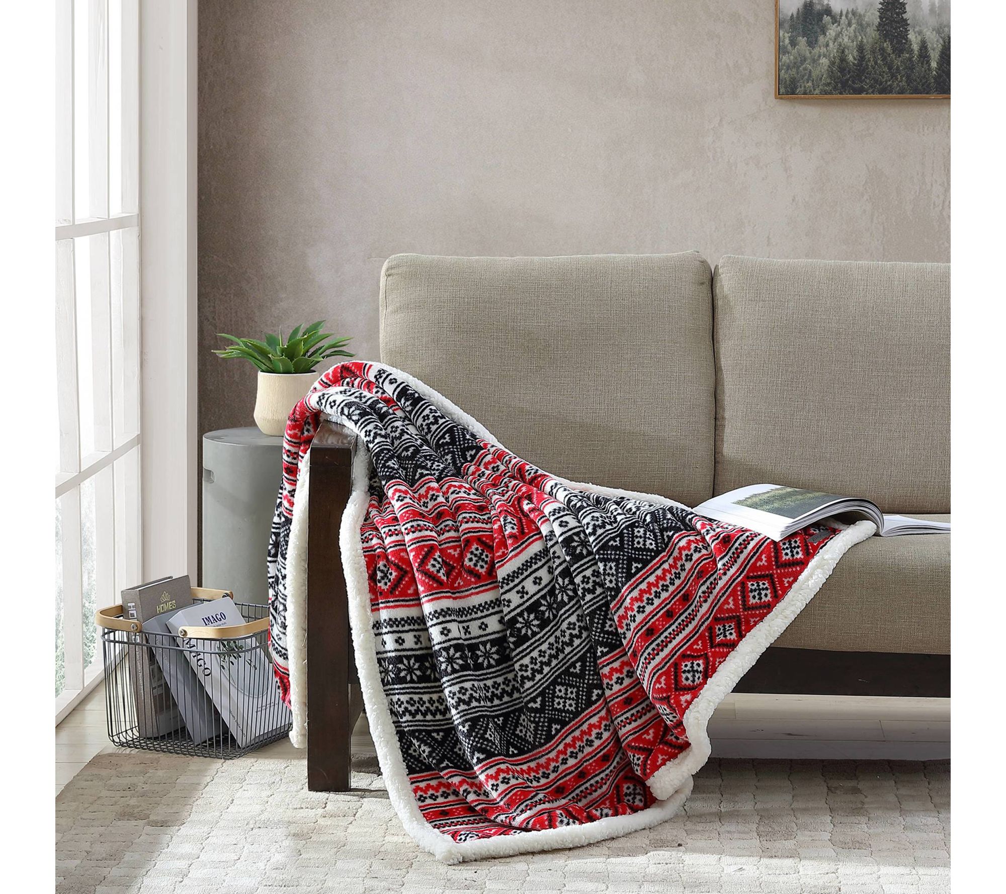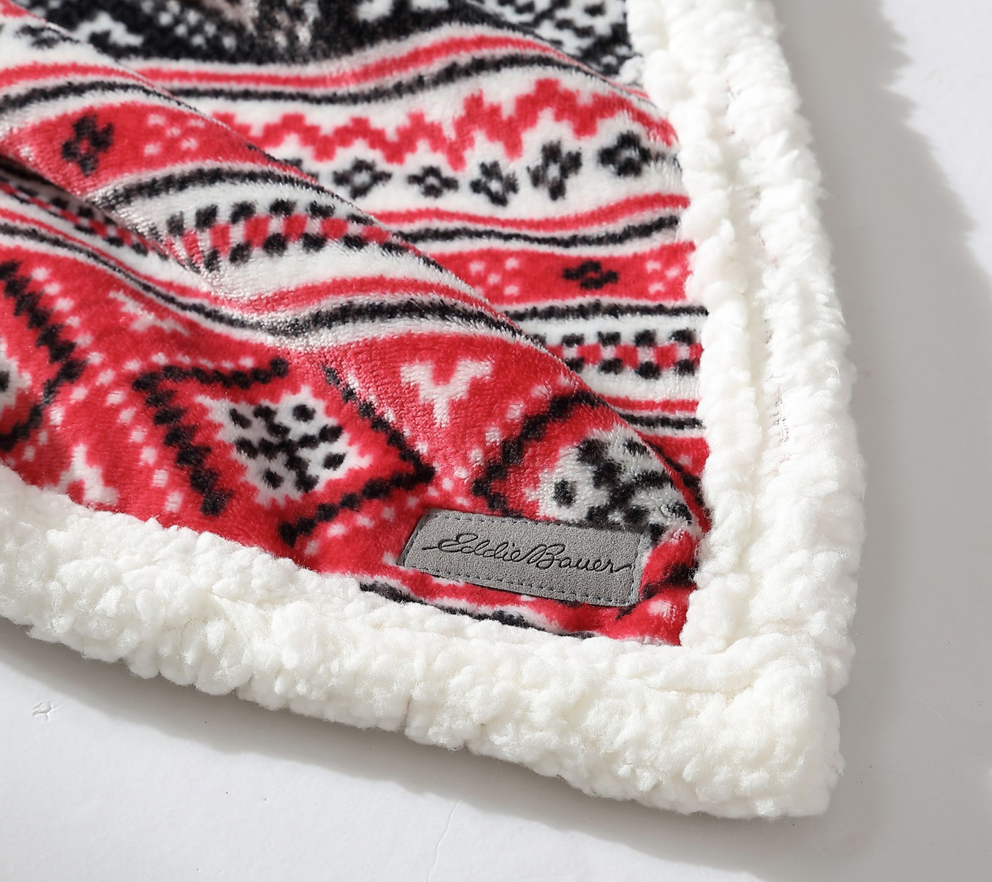 Snuggle up with this plush-fleece throw, featuring a classic Fair Isle design and irresistibly soft texture that makes chilly nights at home feel extra inviting. The reversible style lets you enjoy Eddie Bauer's iconic faux shearling popcorn fleece for added warmth, whether you're lounging on the sofa or packing it for your next adventure. From Eddie Bauer.