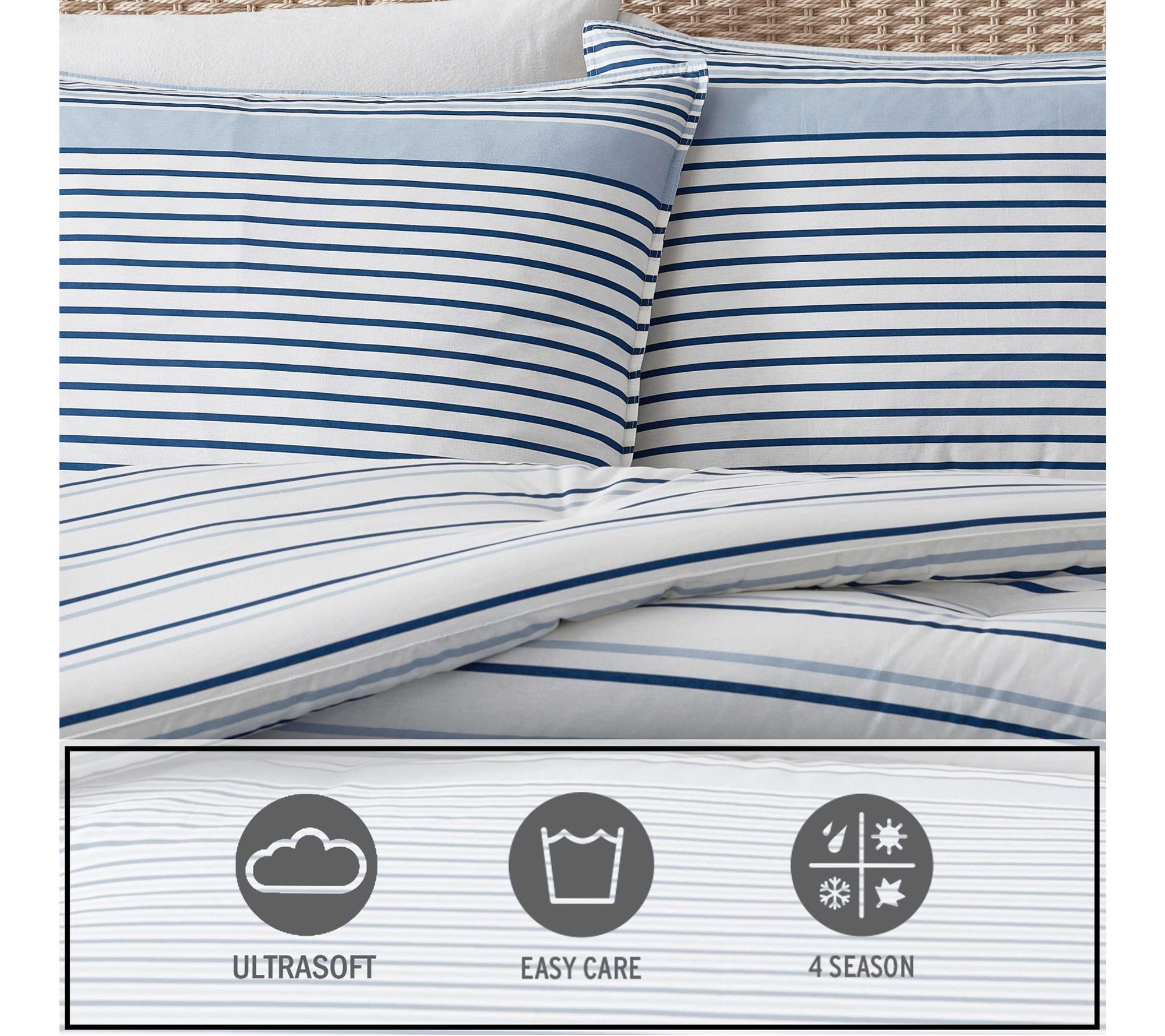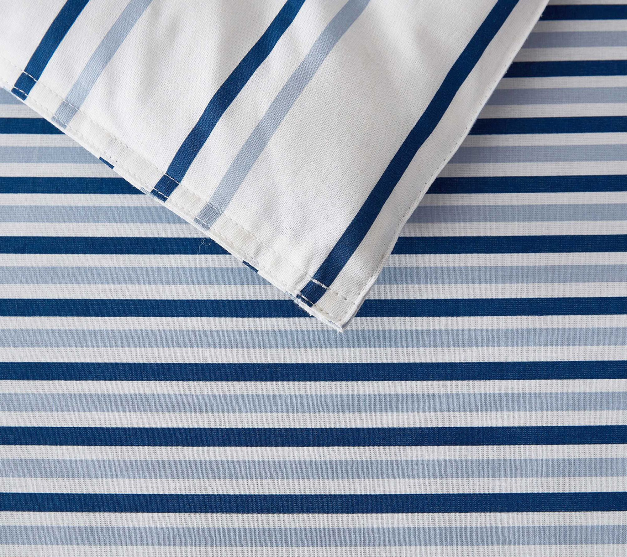 Update your bedroom retreat with the Cooper Stripe duvet cover set, where soft cotton coziness meets understated style. Subtle stripes and a calming blue hue create an inviting space to unwind, while thoughtful closures help keep your bedding neat and tidy. Easy to care for, this bedding set brings relaxed refinement to everyday living. From Eddie Bauer.