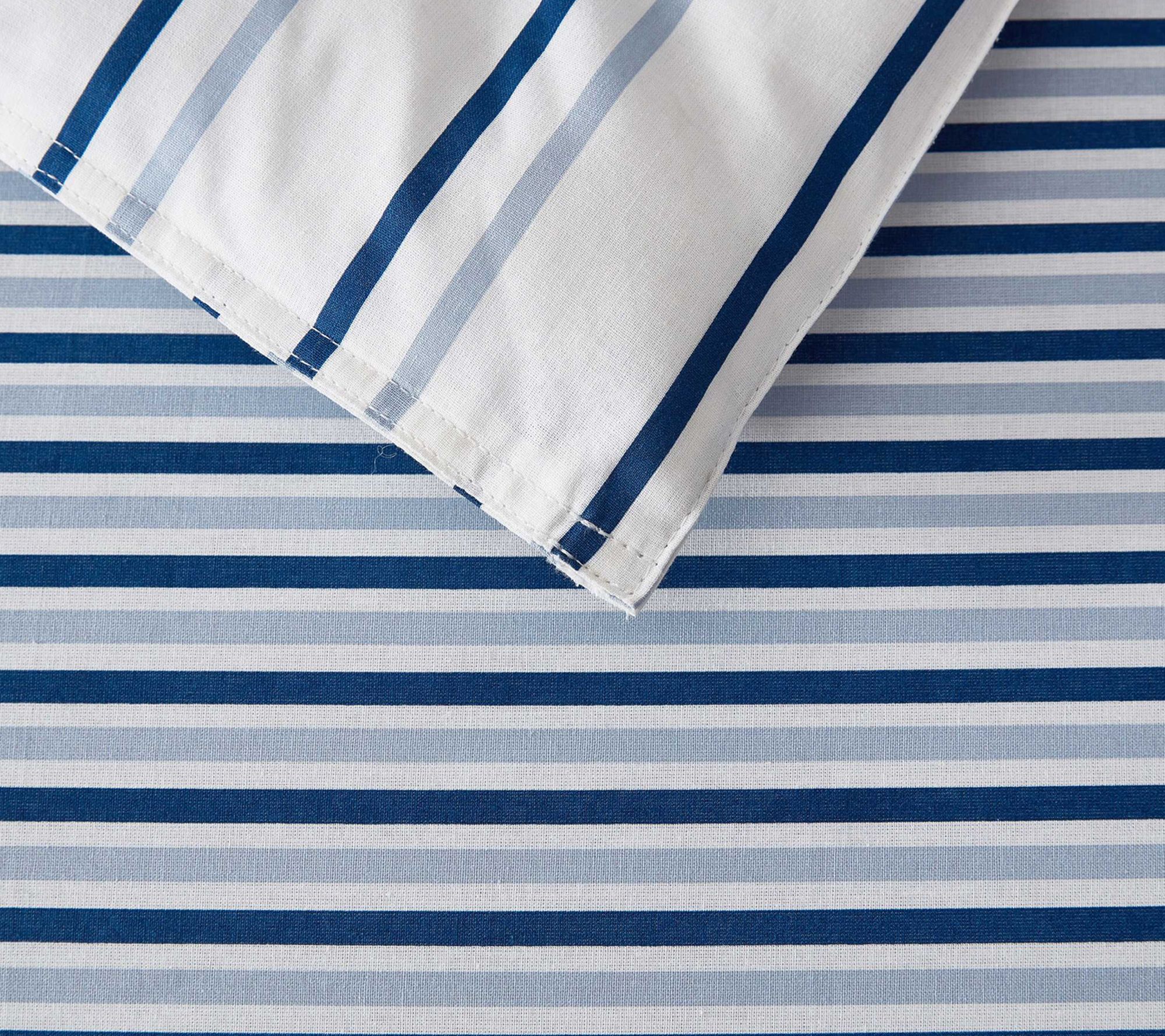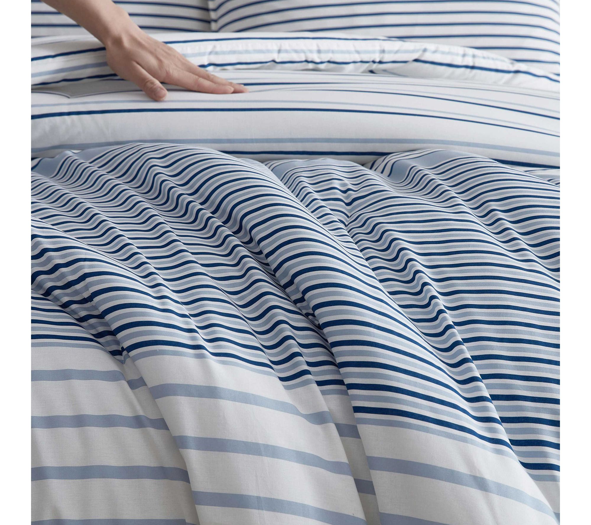 Soft cotton and classic stripes bring an easygoing charm to your bedroom with the Cooper Stripe king duvet cover set. The smooth feel and tailored details help you create a space that looks inviting and feels comfortable night after night. Neat closures keep the insert securely in place, making it a breeze to refresh your bedding. From Eddie Bauer.