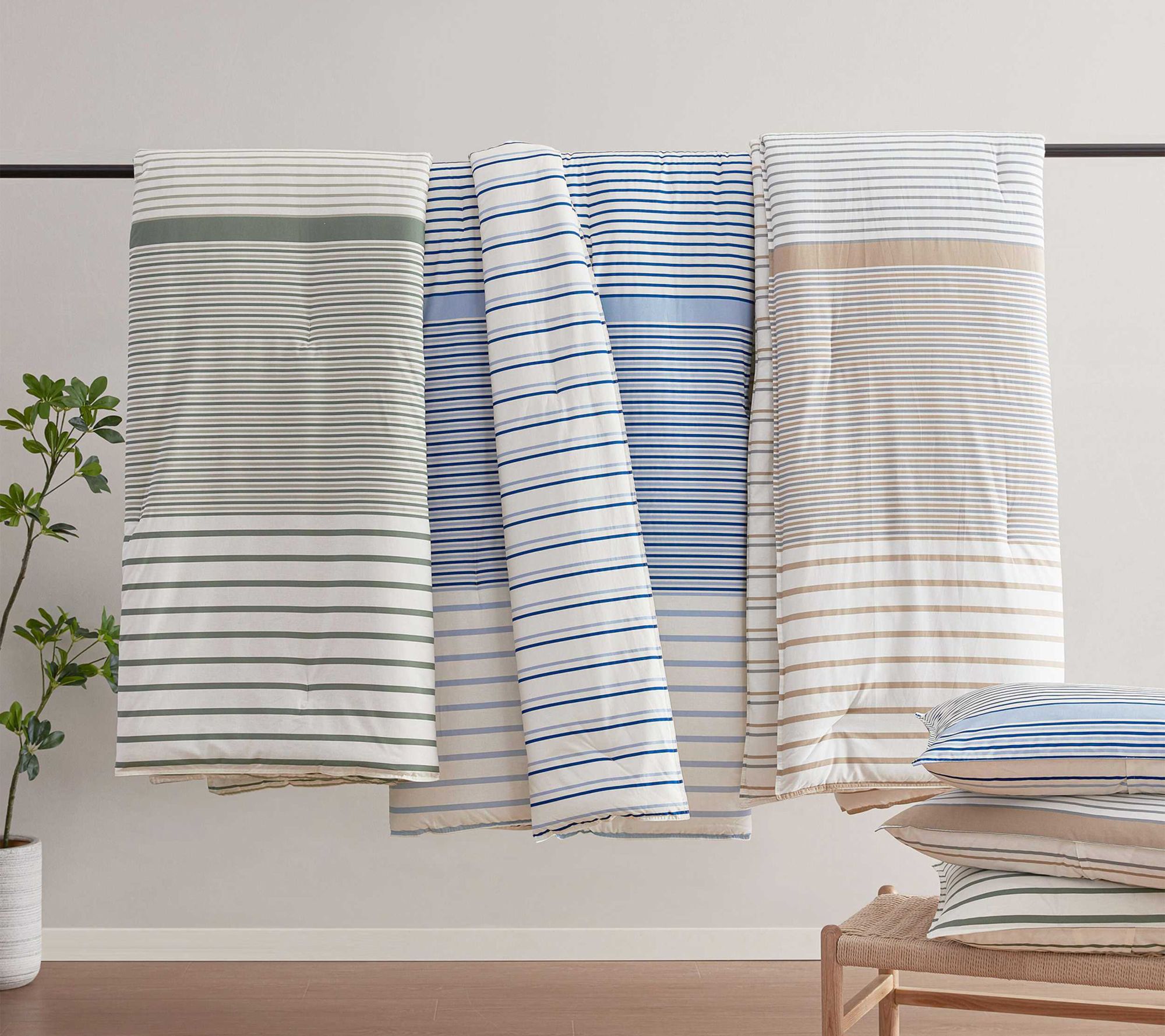 Classic stripes in subtle tones lend an inviting look to your bedroom, while the smooth cotton construction offers comfort for lounging, reading, or winding down after a busy day. Elegant double needle stitching brings a refined touch to this bedding set, making it easy to create the relaxing retreat you've always wanted. From Eddie Bauer.