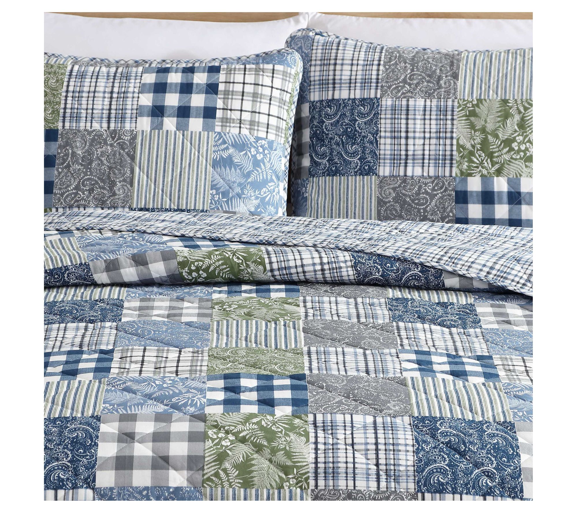 Eddie Bauer Cozy Patchwork Blue Full/Queen Quilt Sham Se