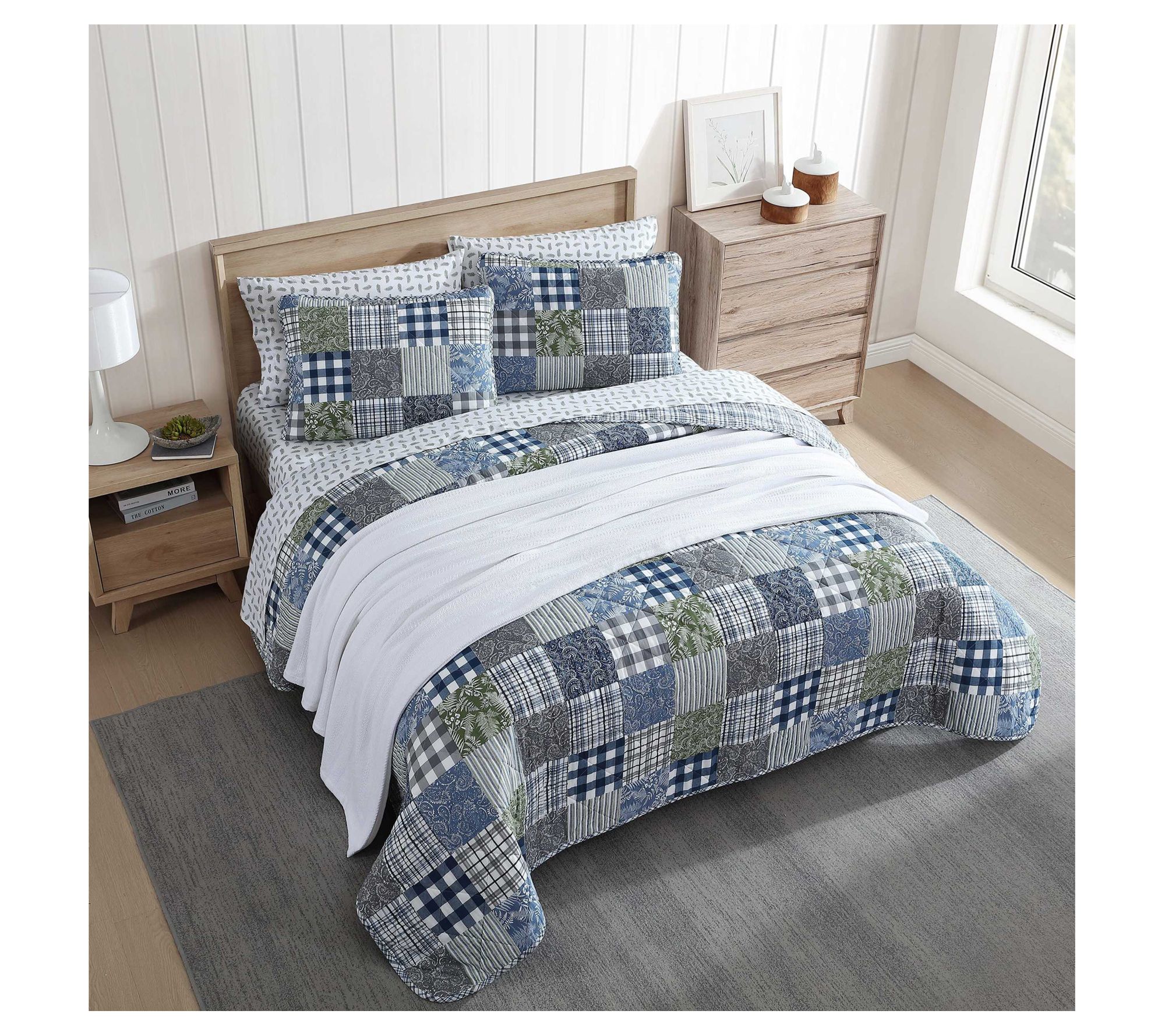 Eddie Bauer Cozy Patchwork Blue King Quilt ShamSet
