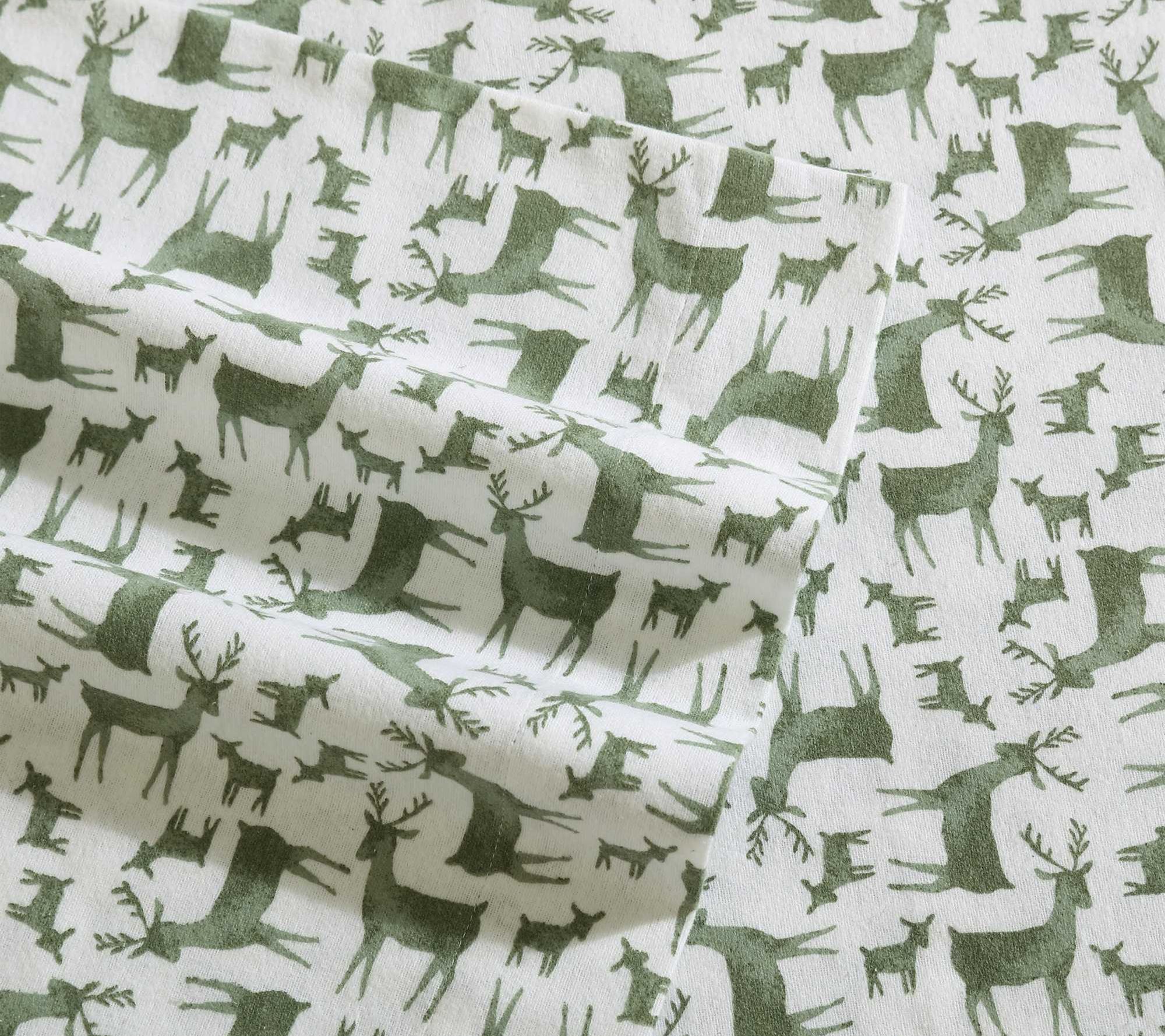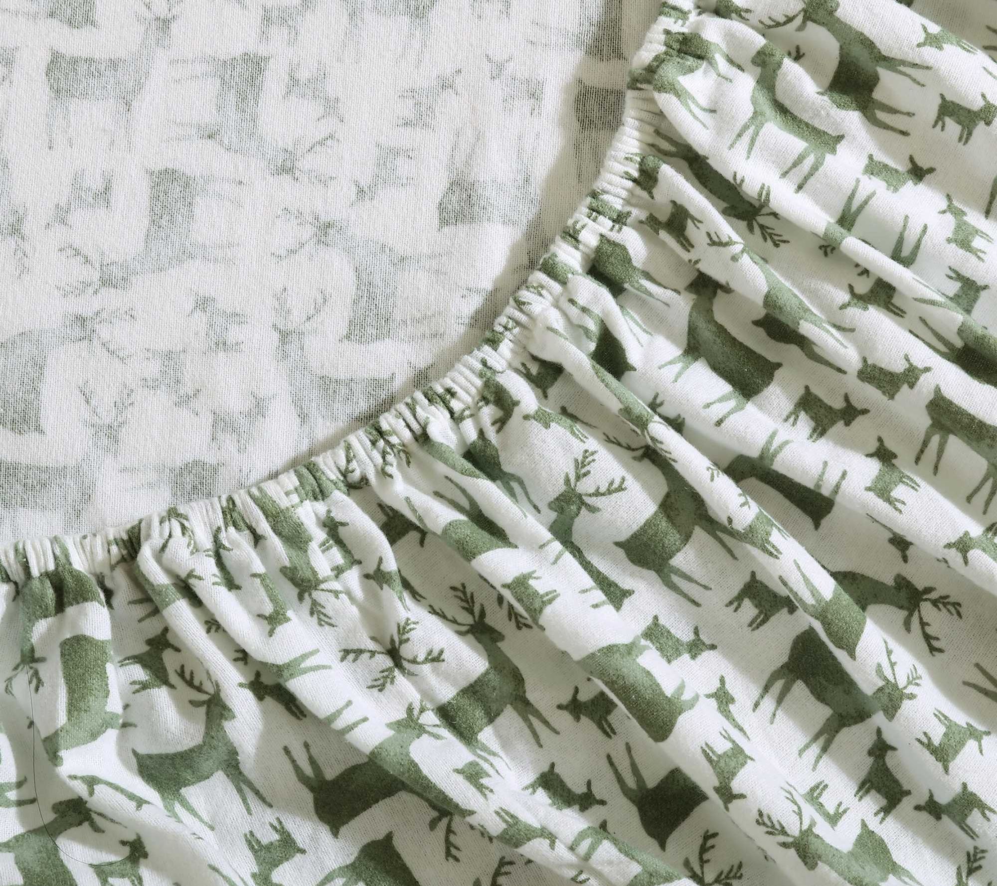 Eddie Bauer Deer Camp Green Cotton Flannel Queen Sheet Set