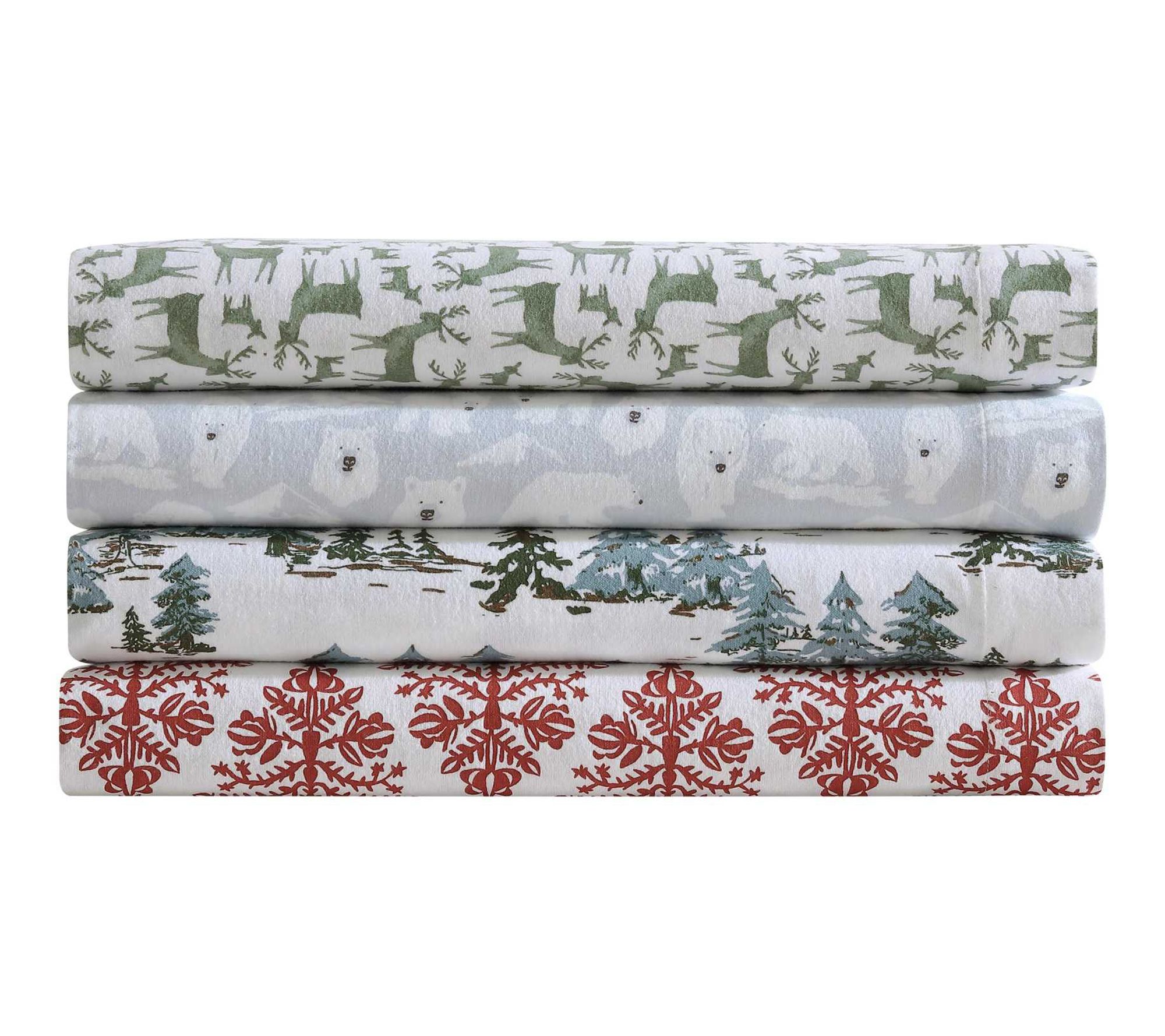 Cozy up for a restful night with this cotton flannel sheet set, designed to keep you warm and comfortable as the temperatures drop. The brushed texture adds extra softness, while deep pockets ensure a secure fit on your mattress -- making it a welcoming retreat after a long day. From Eddie Bauer.