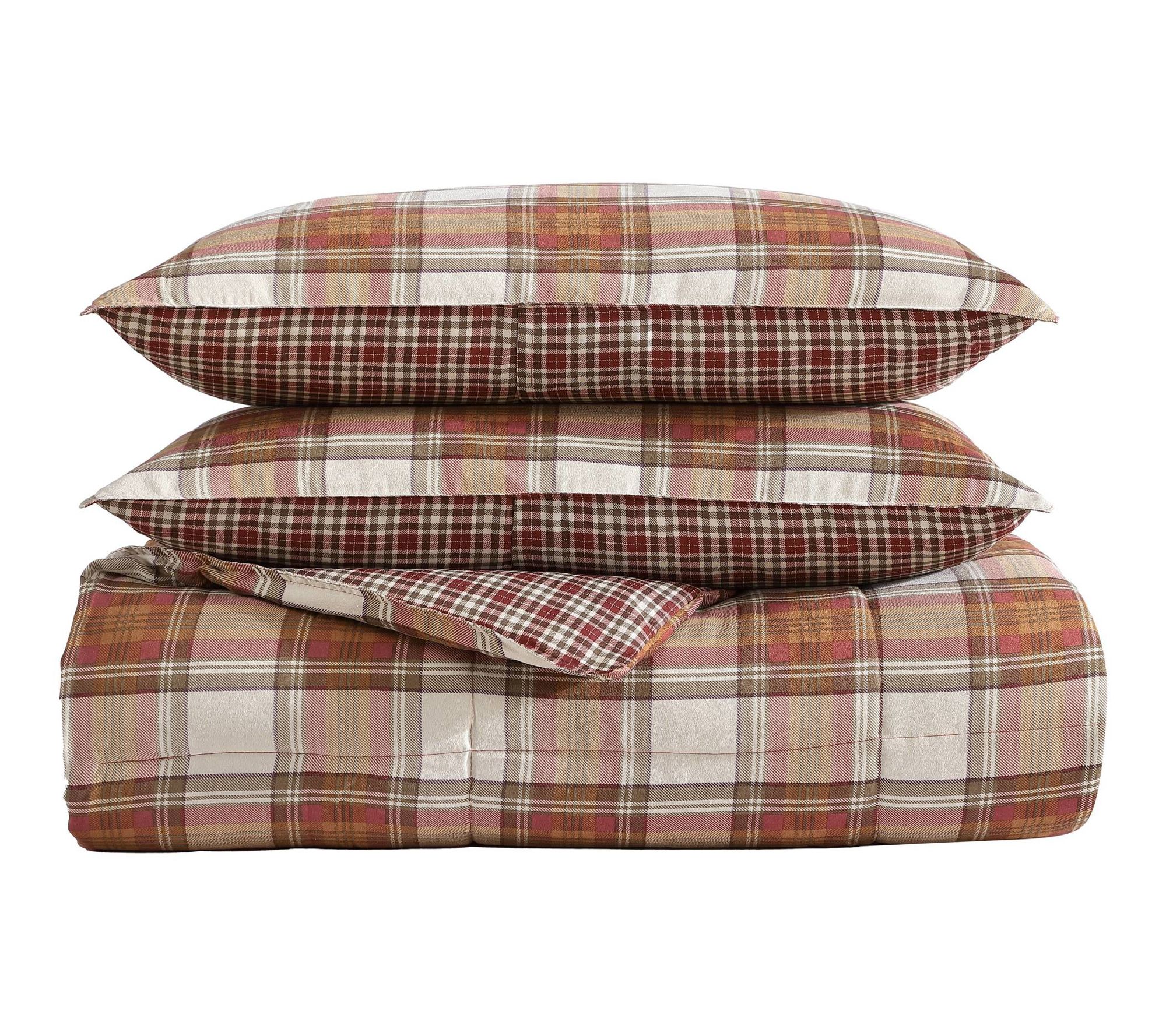 Eddie Bauer Edgewood Plaid Red Textured F/Q Comforter Set