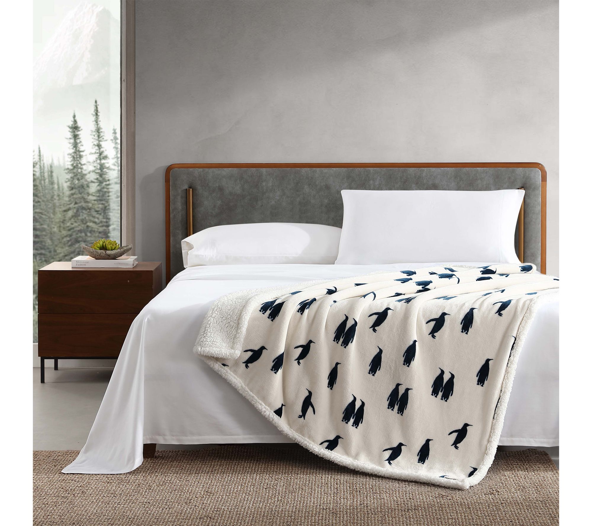 Create a cocoon of comfort on your couch or bed with this plush throw. Soft fleece wraps you in irresistible warmth, while the reversible faux shearling side adds texture and coziness to chilly evenings, movie nights, or afternoons spent reading. From Eddie Bauer.