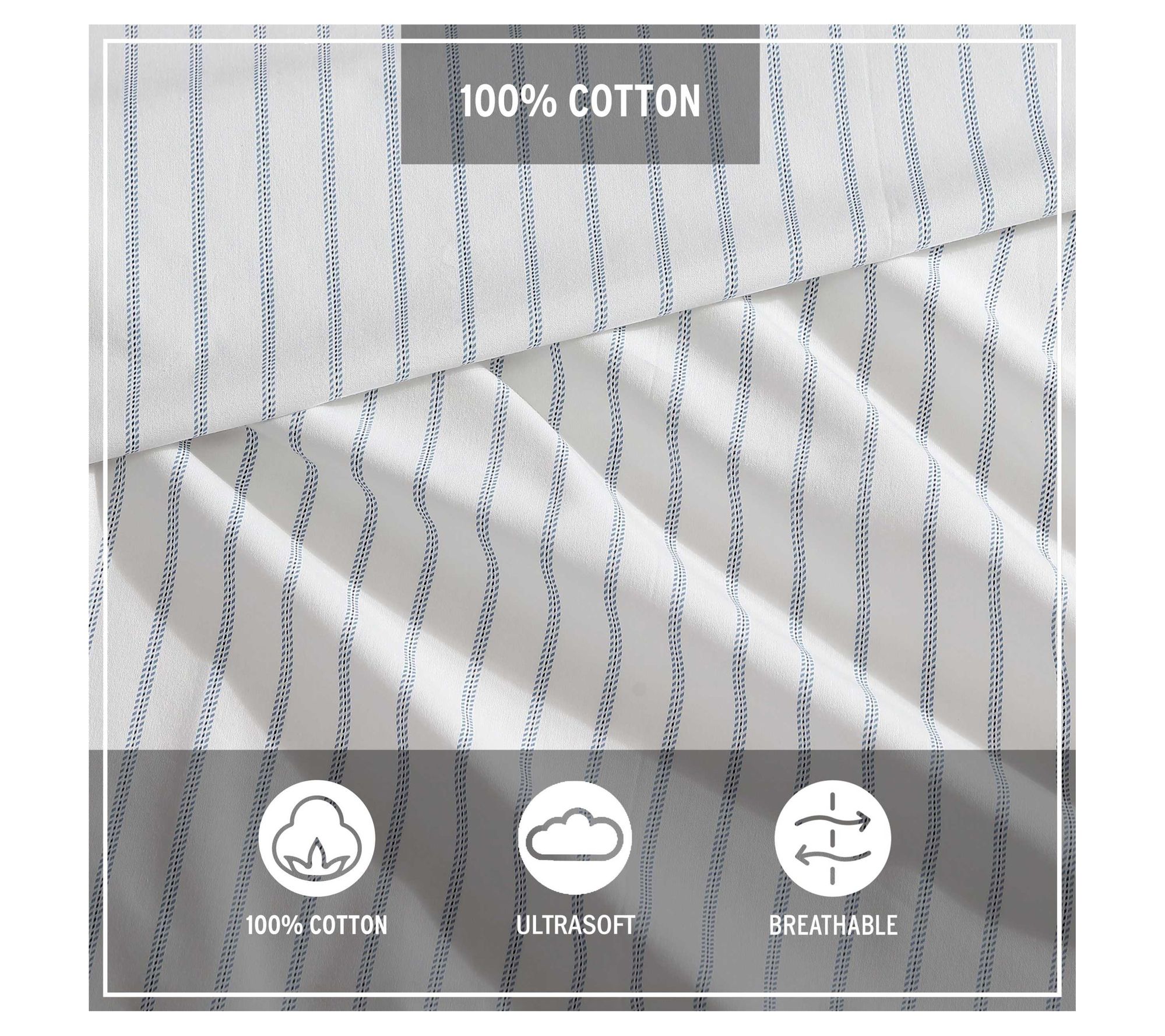 Update your bedroom decor with the stylish and crisp Eddie Bauer Essential Stripe sheet set. Crafted with breathable cotton, this set offers a comfortable and unified look to complement your room's color palette. Easy-care, machine-washable material ensures convenient upkeep. From Eddie Bauer.