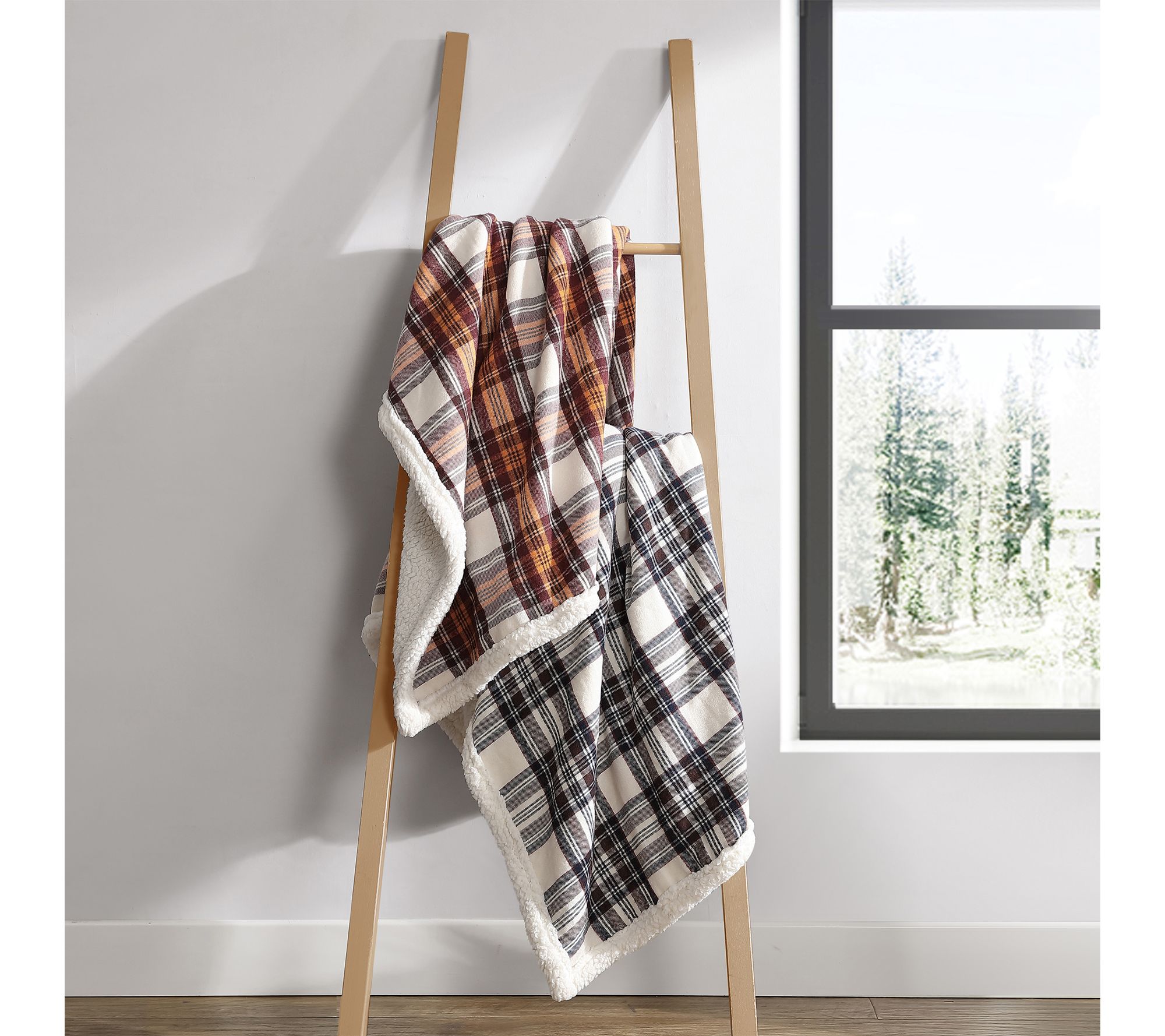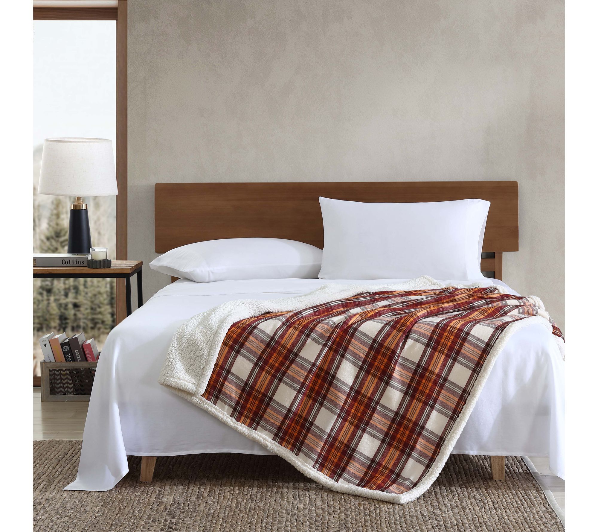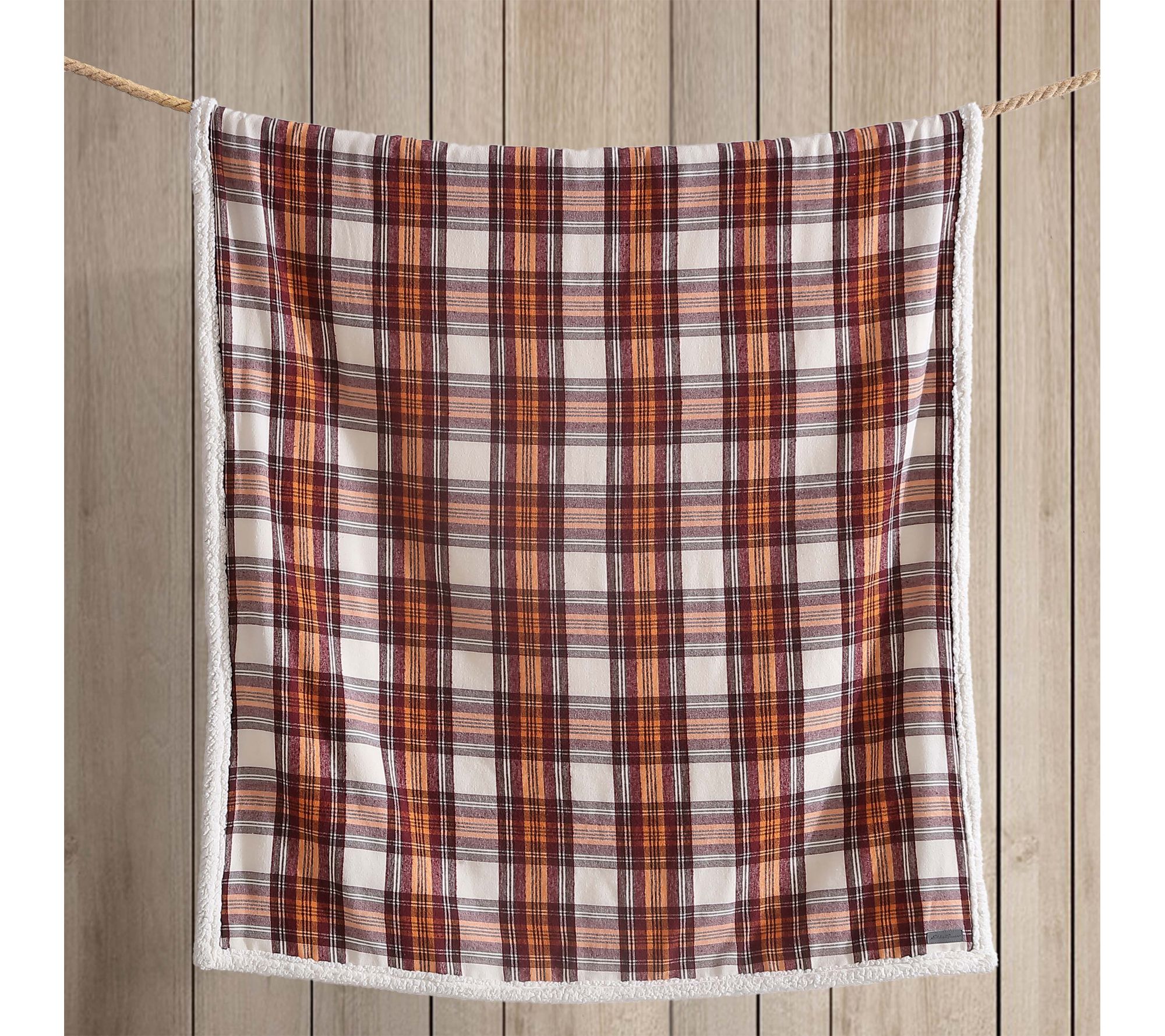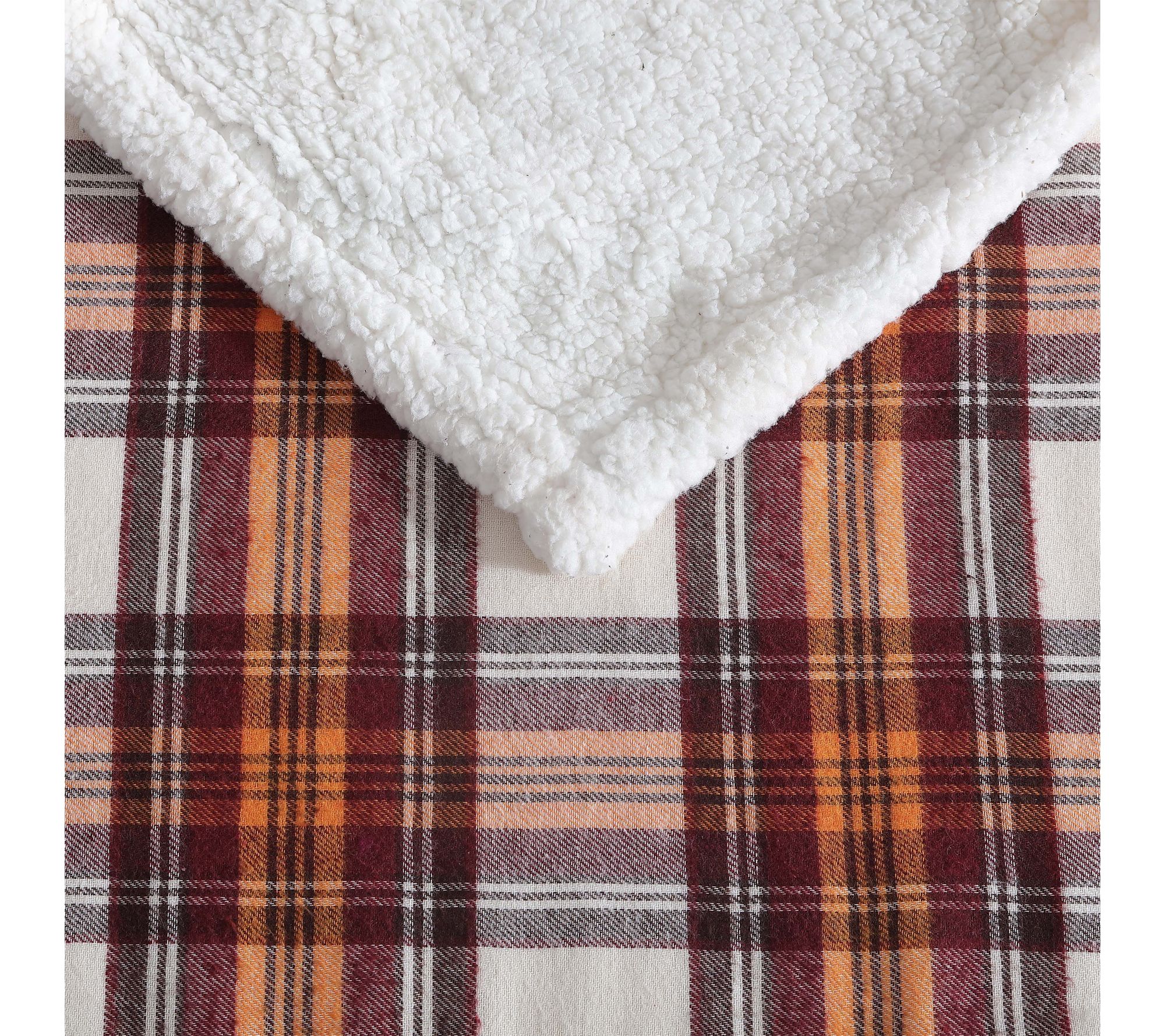 • Reverses from brushed flannel to signature faux shearling popcorn fleece