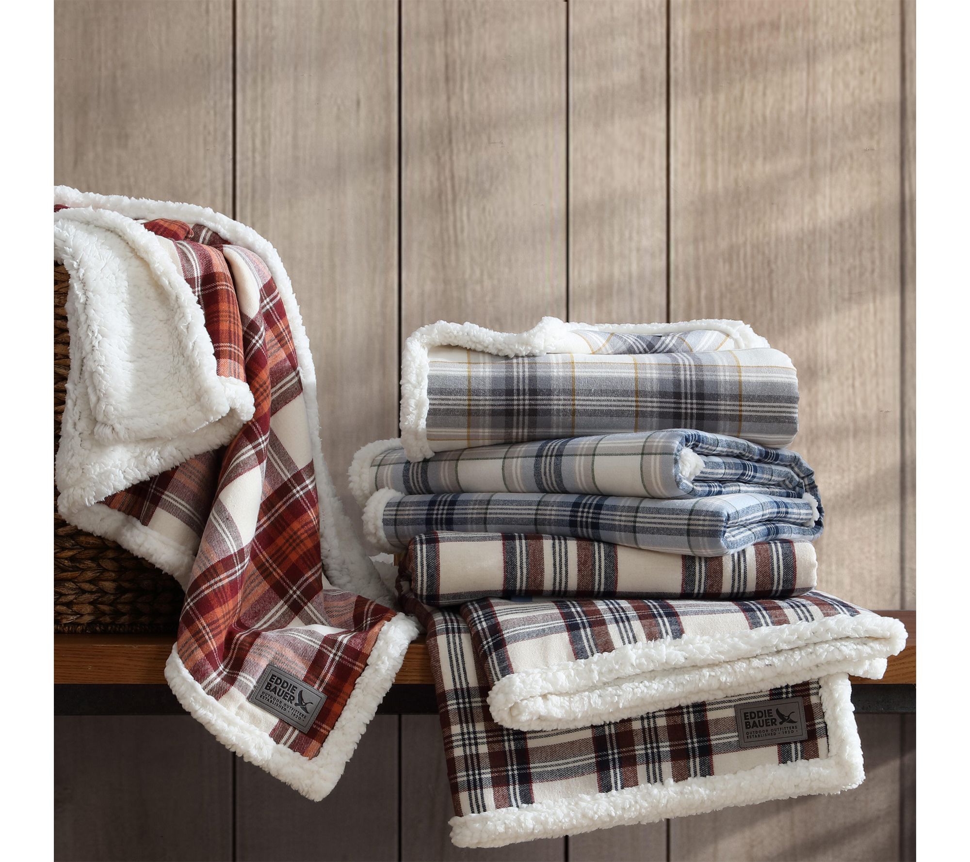 Settle in for movie nights or chilly mornings with this Eddie Bauer throw, crafted with classic flannel on one side and snuggly faux shearling popcorn fleece on the reverse. The compact 50" x 60" size makes it easy to drape over your favorite chair or bring along for cozy comfort wherever you go. From Eddie Bauer.