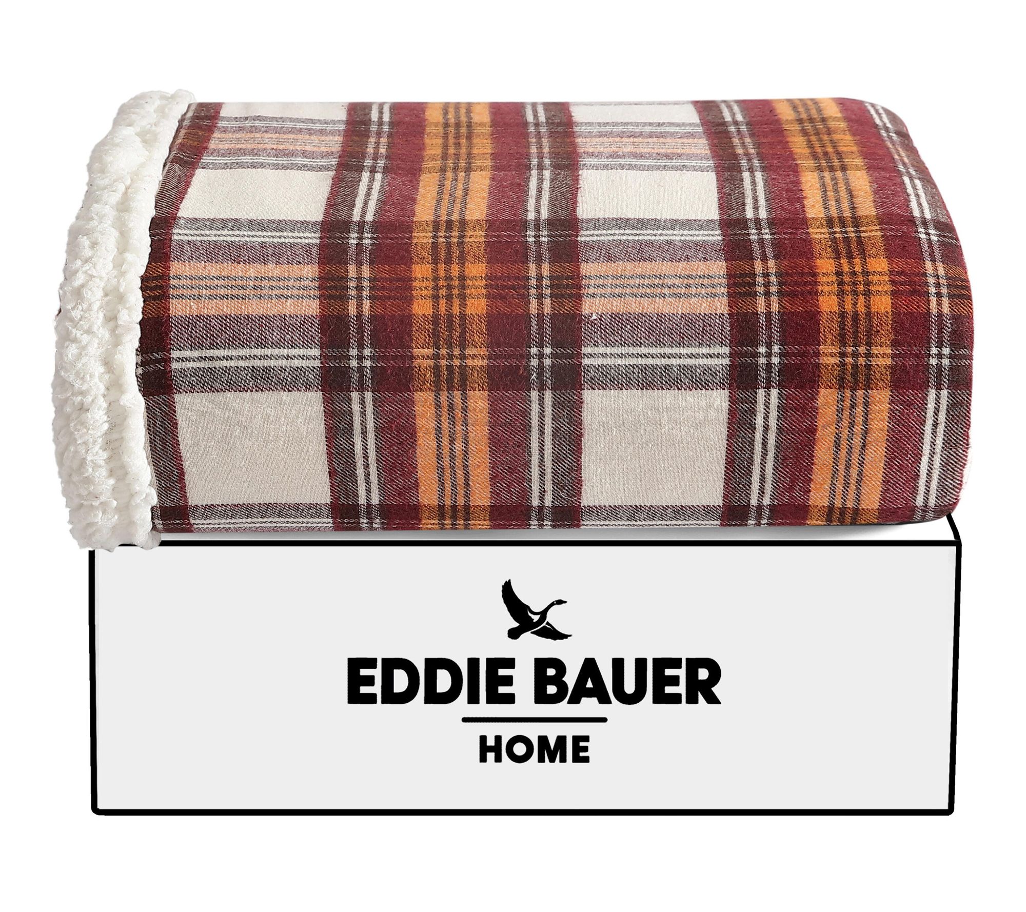 Eddie Bauer Flannel Sherpa Red Cotton-Blend 50"X60" Throw