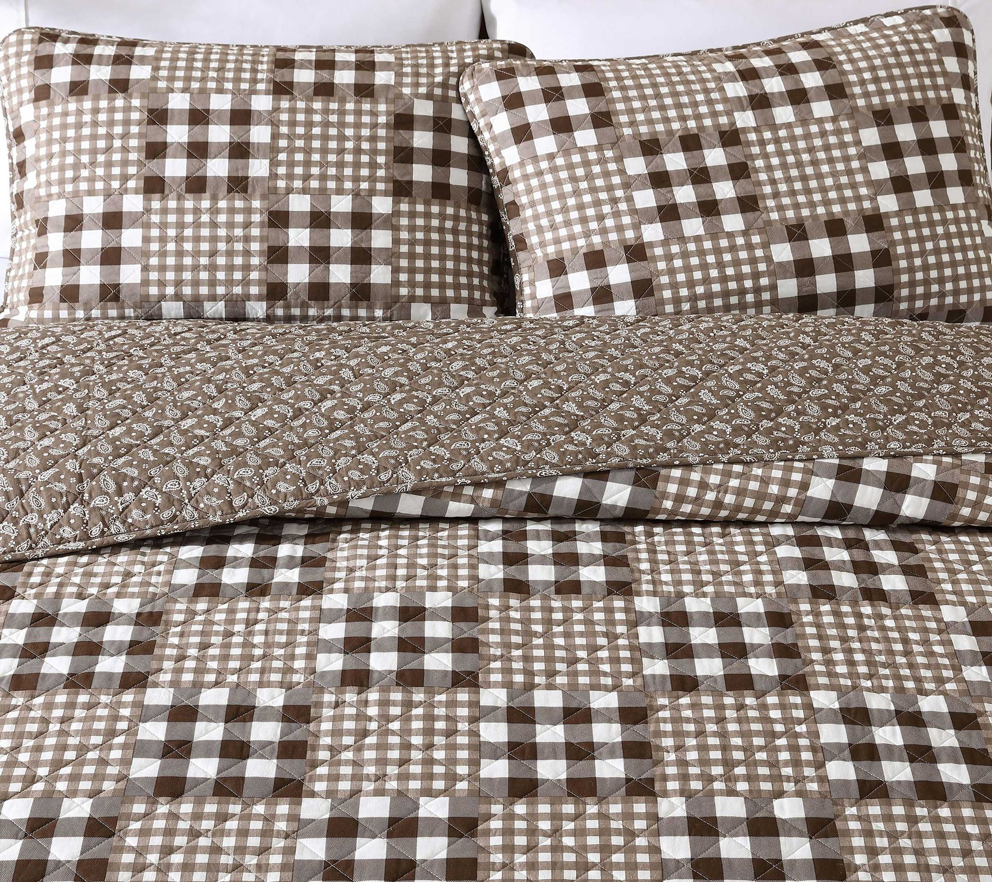 Eddie Bauer Gingham Patchwork Brown King QuiltSet