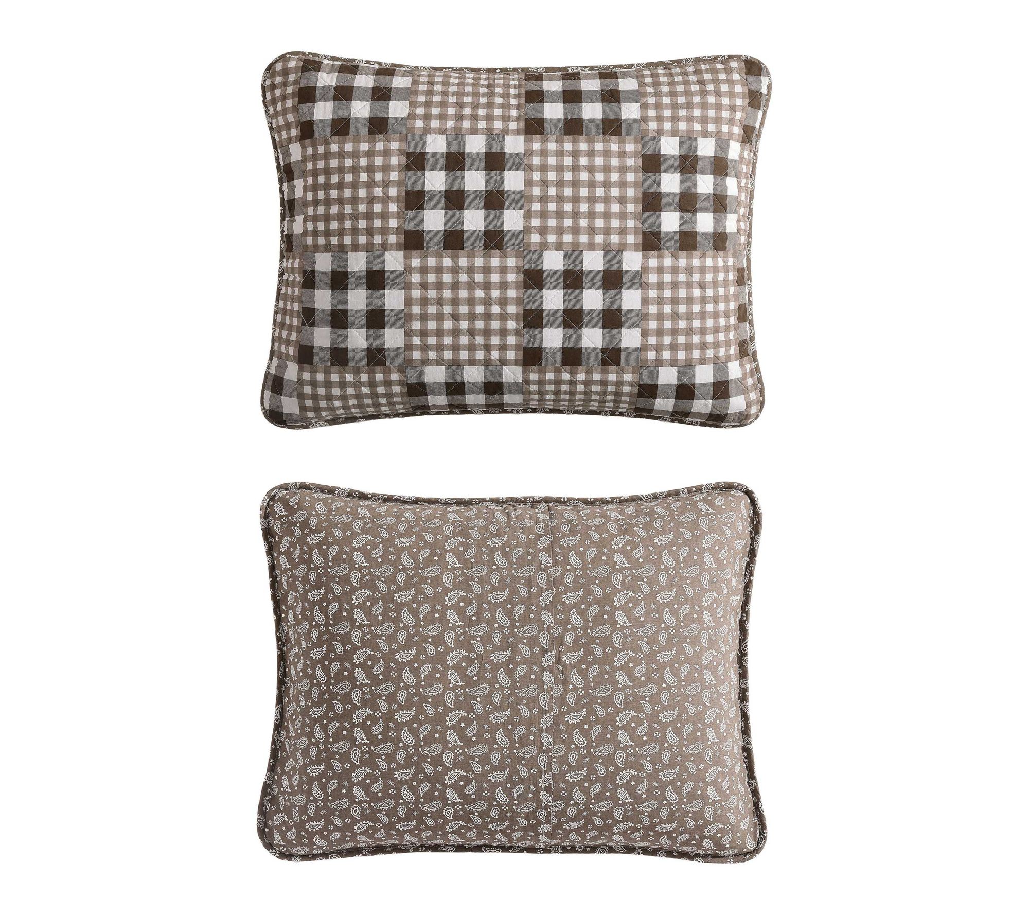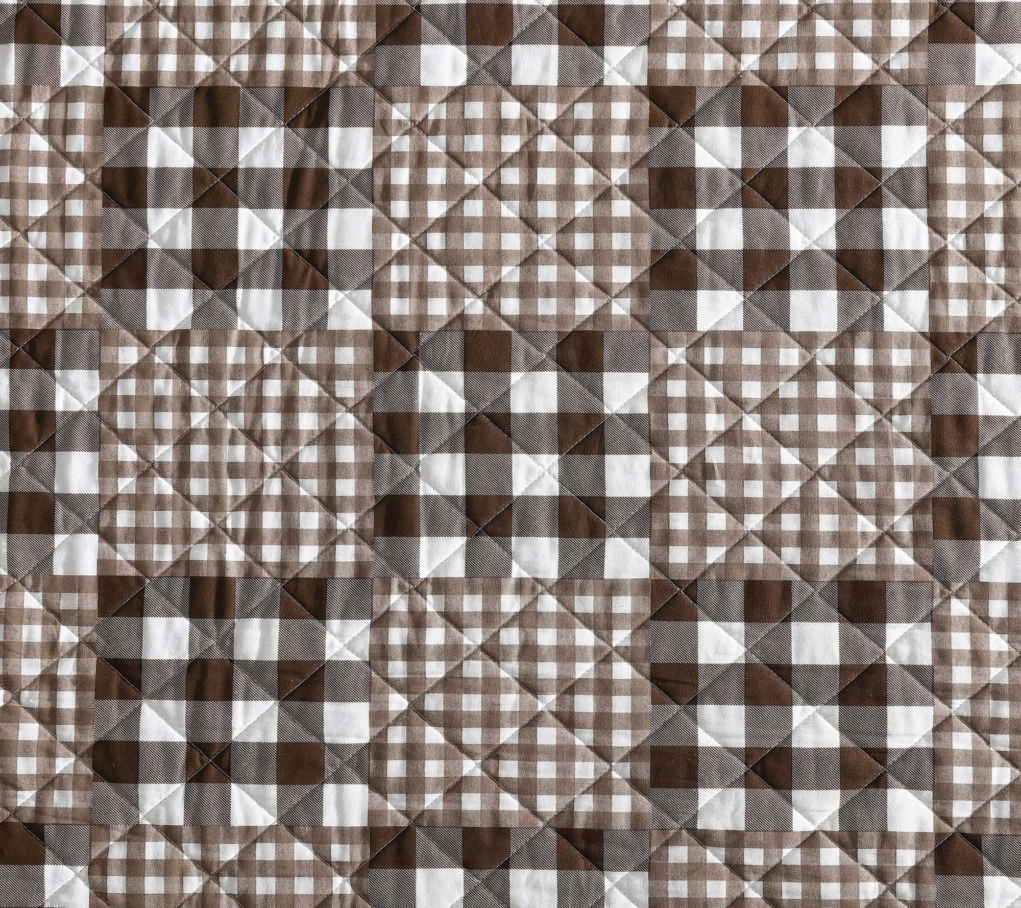 Stitched with a gingham patchwork design, this king quilt set brings a cozy, inviting look to your space and adds warmth for those restful nights. The rich brown tones offer versatile style, pairing effortlessly with a range of bedding accents or seasonal decor. Crafted for comfort, it brings Eddie Bauer's signature touch to every night. From Eddie Bauer.