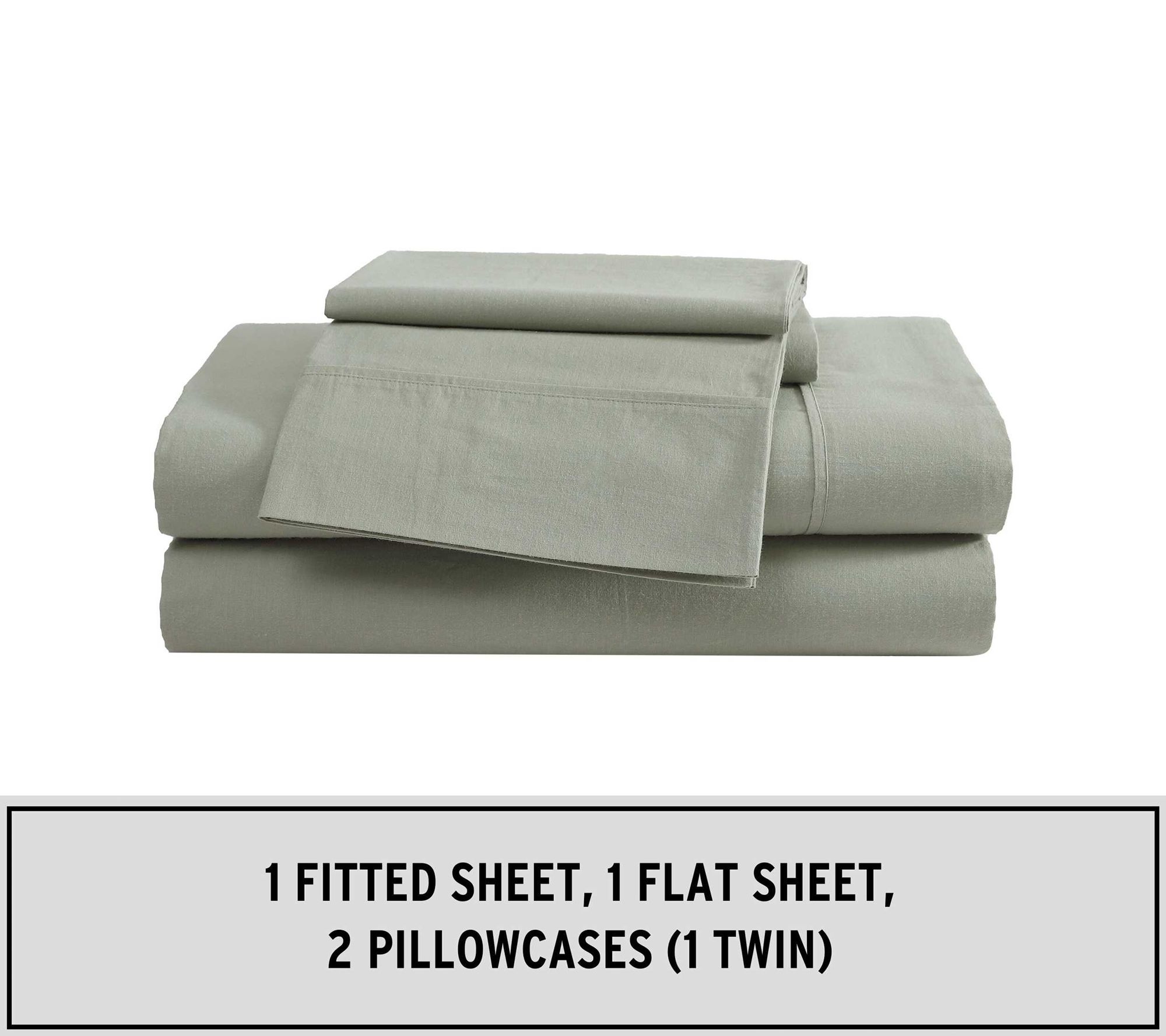 • Includes flat sheet, fitted sheet, and two king pillowcases