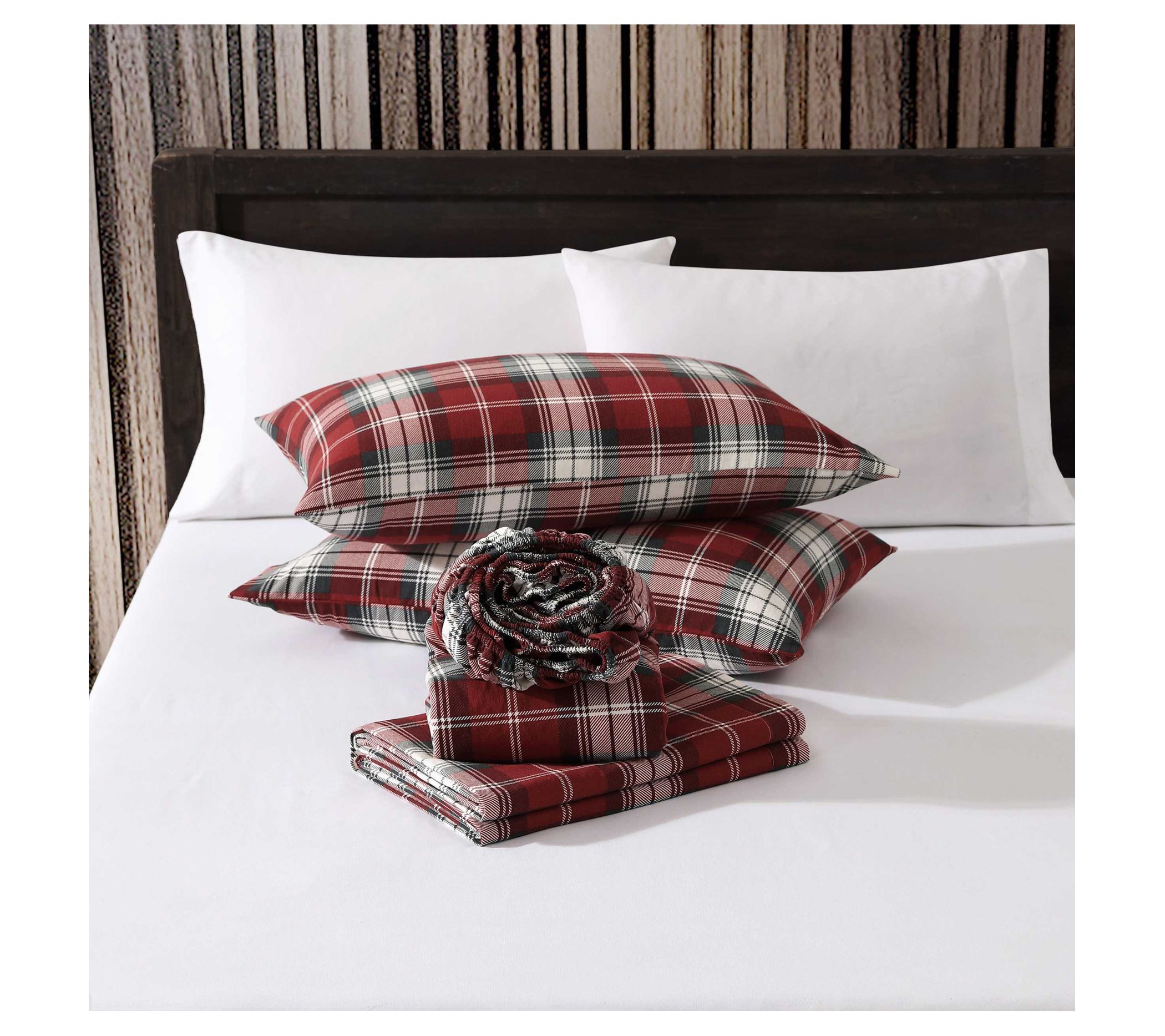 Experience cozy nights and classic charm as you settle into these soft flannel sheets, perfect for chilly evenings or lazy Sunday mornings. Brushed, breathable cotton offers comfort that gets even softer with every wash, while a bold plaid design adds a timeless touch to your bedding ensemble. From Eddie Bauer.