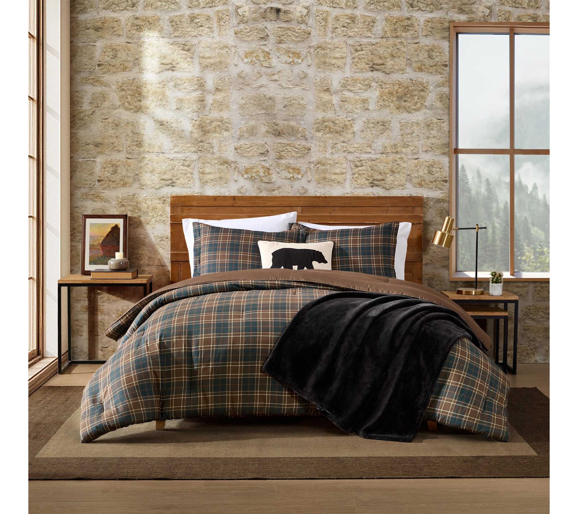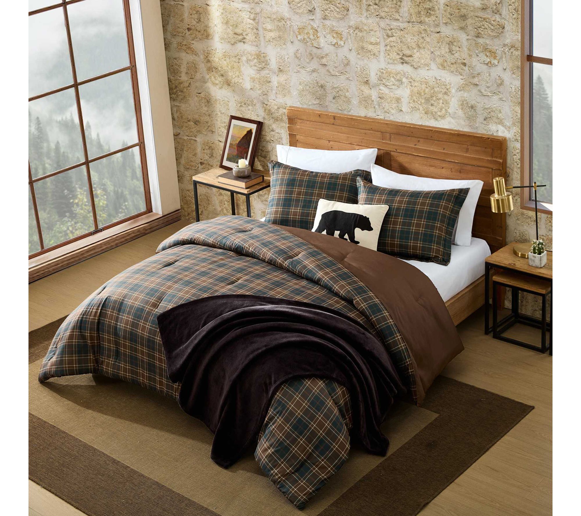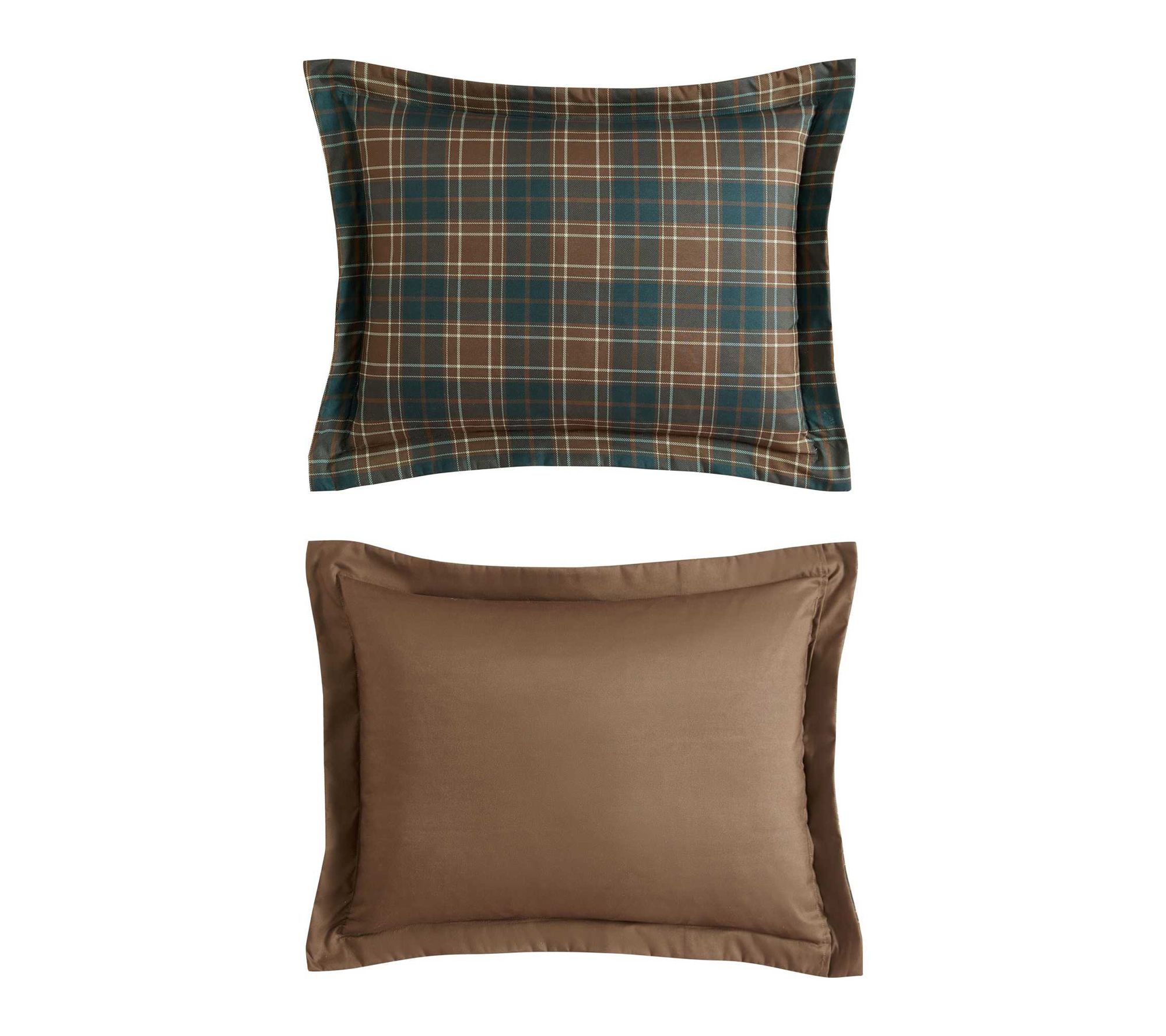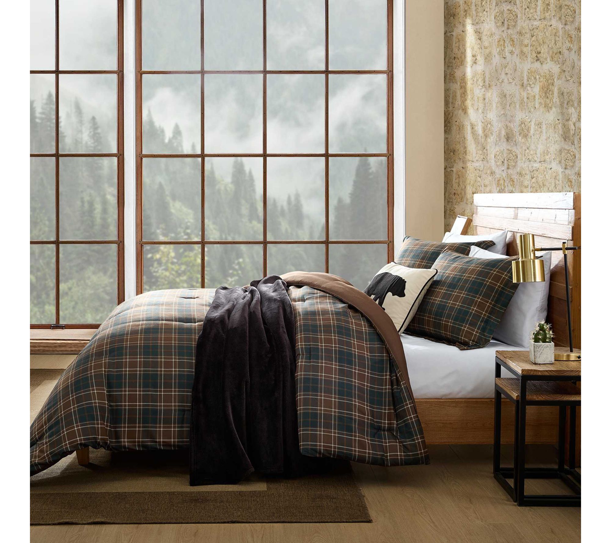 Transform your bedroom into a cozy retreat with this comforter set, featuring a lodge-inspired plaid in earthy browns and greys that brings warmth and style to your space. The bold pattern and plush, medium-weight fill create an inviting atmosphere for restful nights, while tailored shams add a polished finish. From Eddie Bauer.
