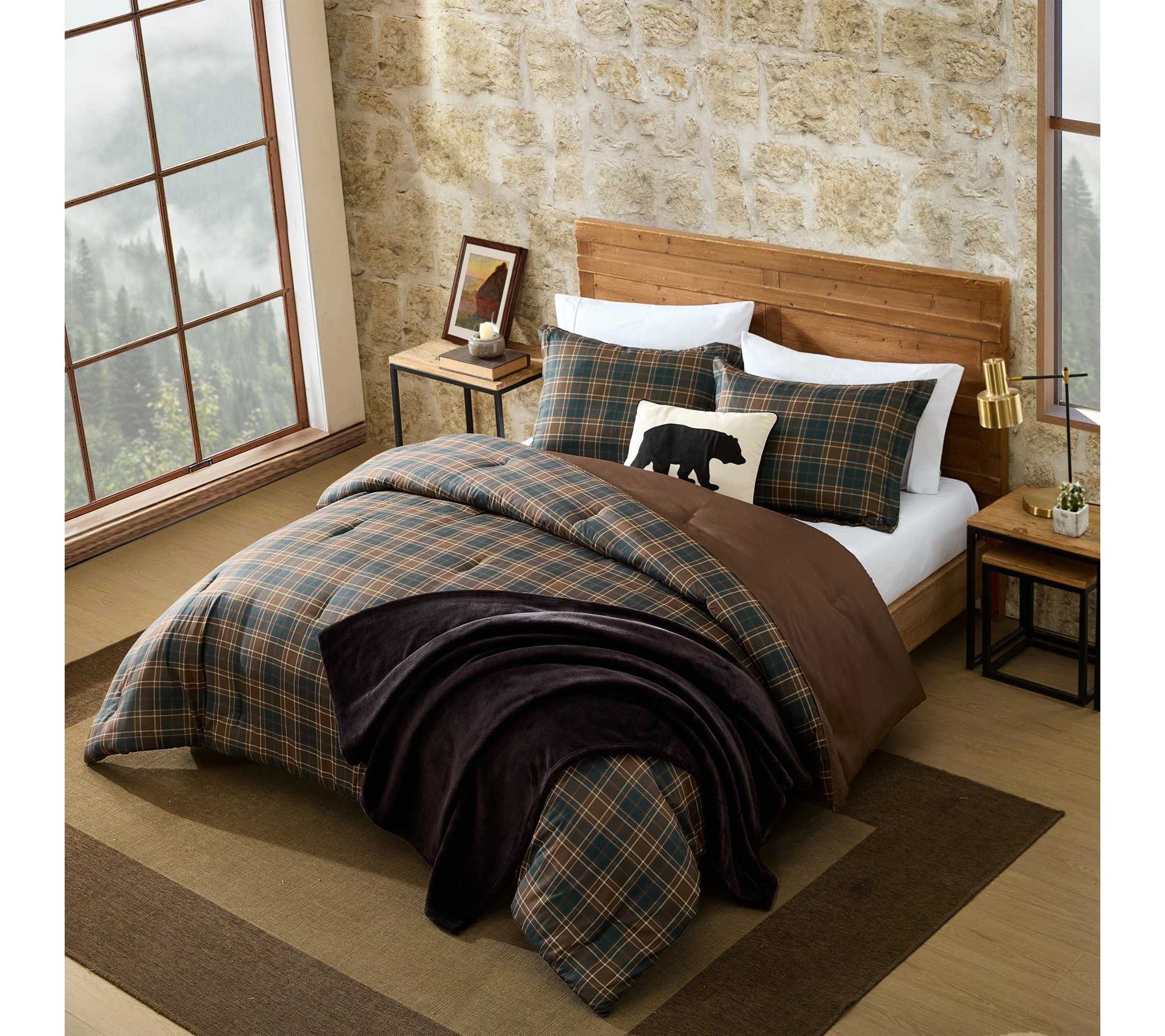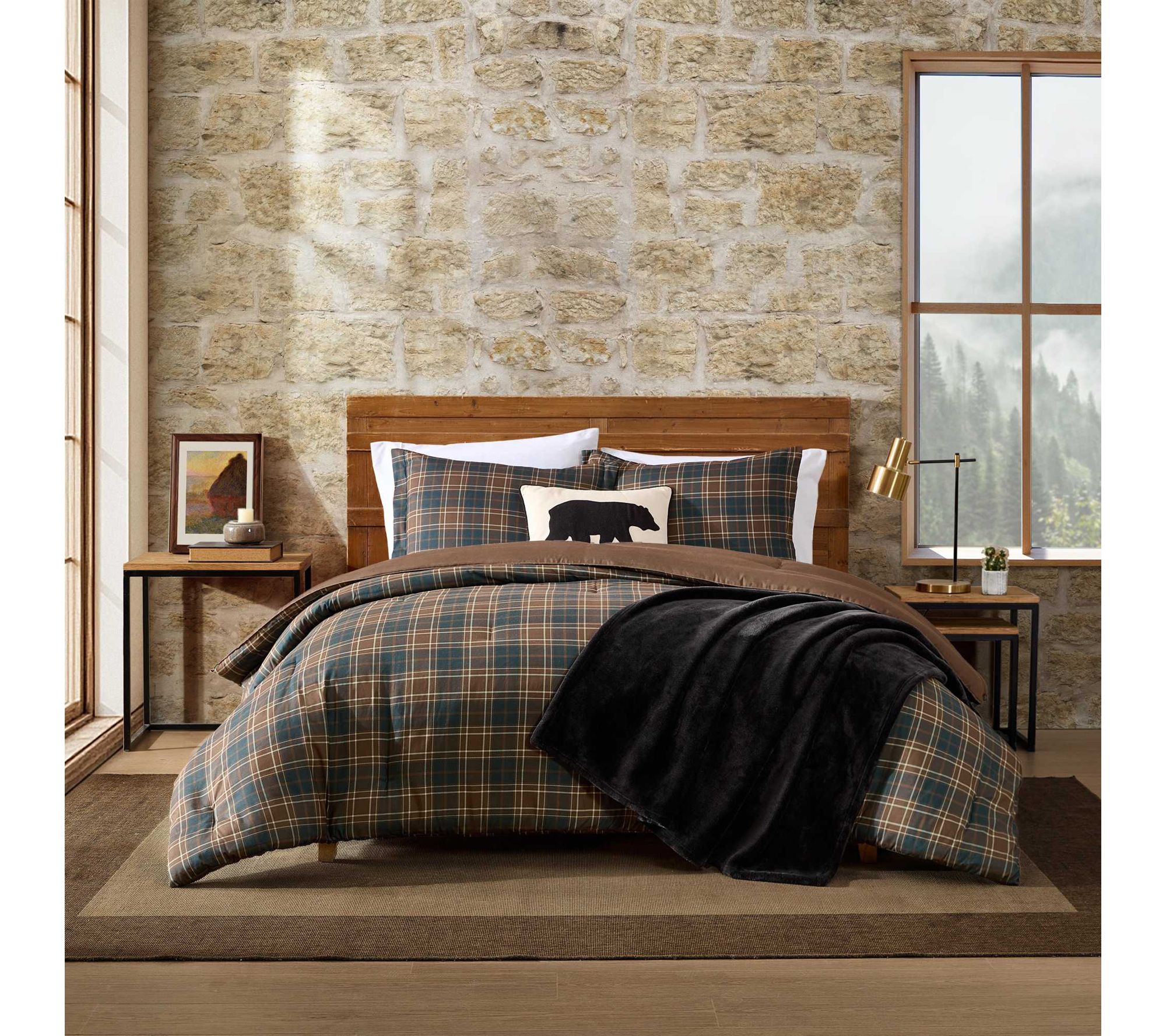 Transform your bedroom into a cozy retreat with this comforter set, styled in classic Huntley plaid and rich, earthy tones for a warm, lodge-inspired look. The bold pattern and plush feel create an inviting space for restful nights, while the easy-care fabric ensures everyday convenience and lasting comfort. From Eddie Bauer.