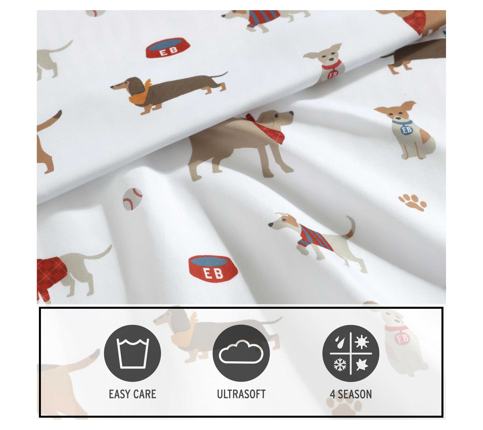 Bring smiles and cozy comfort to bedtime with the Buddy and Friends sheet set, featuring playful puppy illustrations in cheerful shades to brighten any child's room. Super soft polyester microfiber feels gentle against the skin. Pair these sheets with other Eddie Bauer kids' pieces for an adorable, easy-to-style bedroom. From Eddie Bauer.