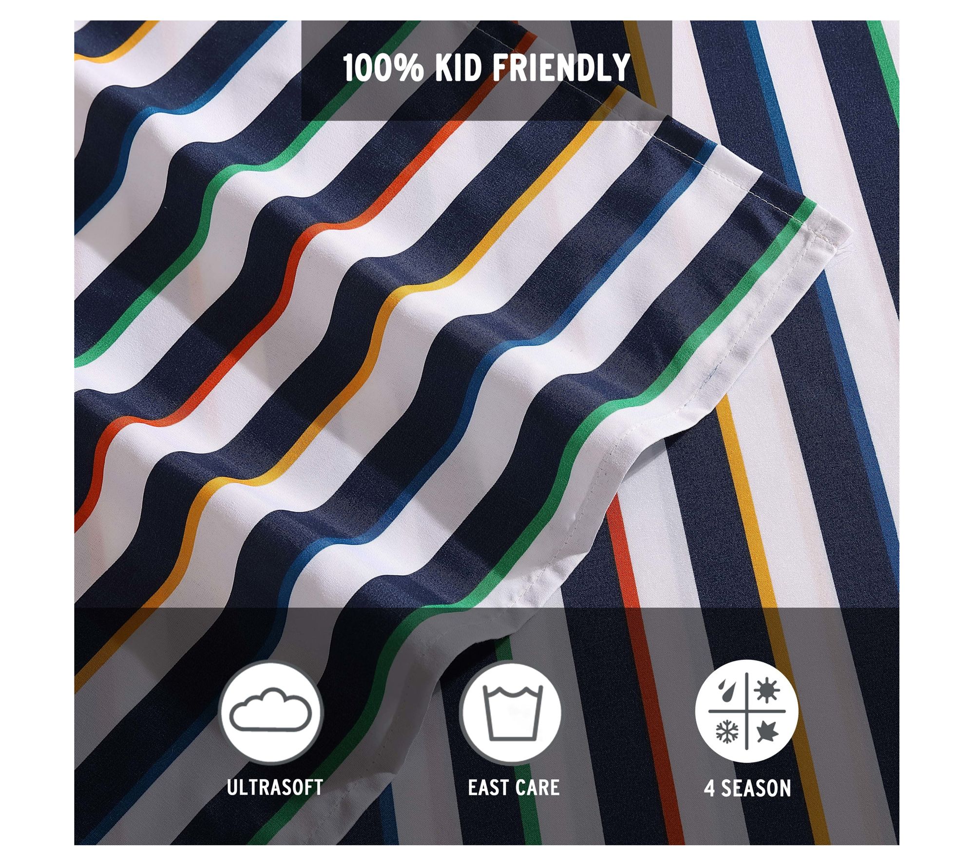 Bedtime gets a fun upgrade with these cheerful striped sheets, designed especially for kids who love a cozy night's sleep. Crafted from soft microfiber, this sheet set is durable and easy to care for -- making laundry day a breeze for busy families. From Eddie Bauer.