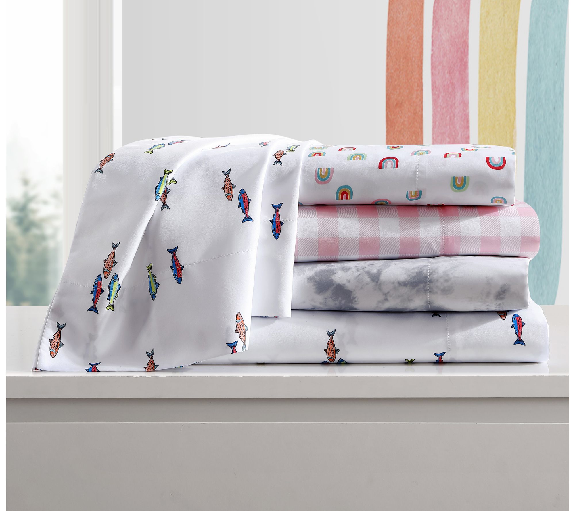 Brighten up bedtime with the playful design and extra-soft feel of this Eddie Bauer Kids Sunnyvale Rainbow full sheet set. Kids can snuggle into the smooth microfiber every night, while parents appreciate how easy it is to wash and dry. From Eddie Bauer.