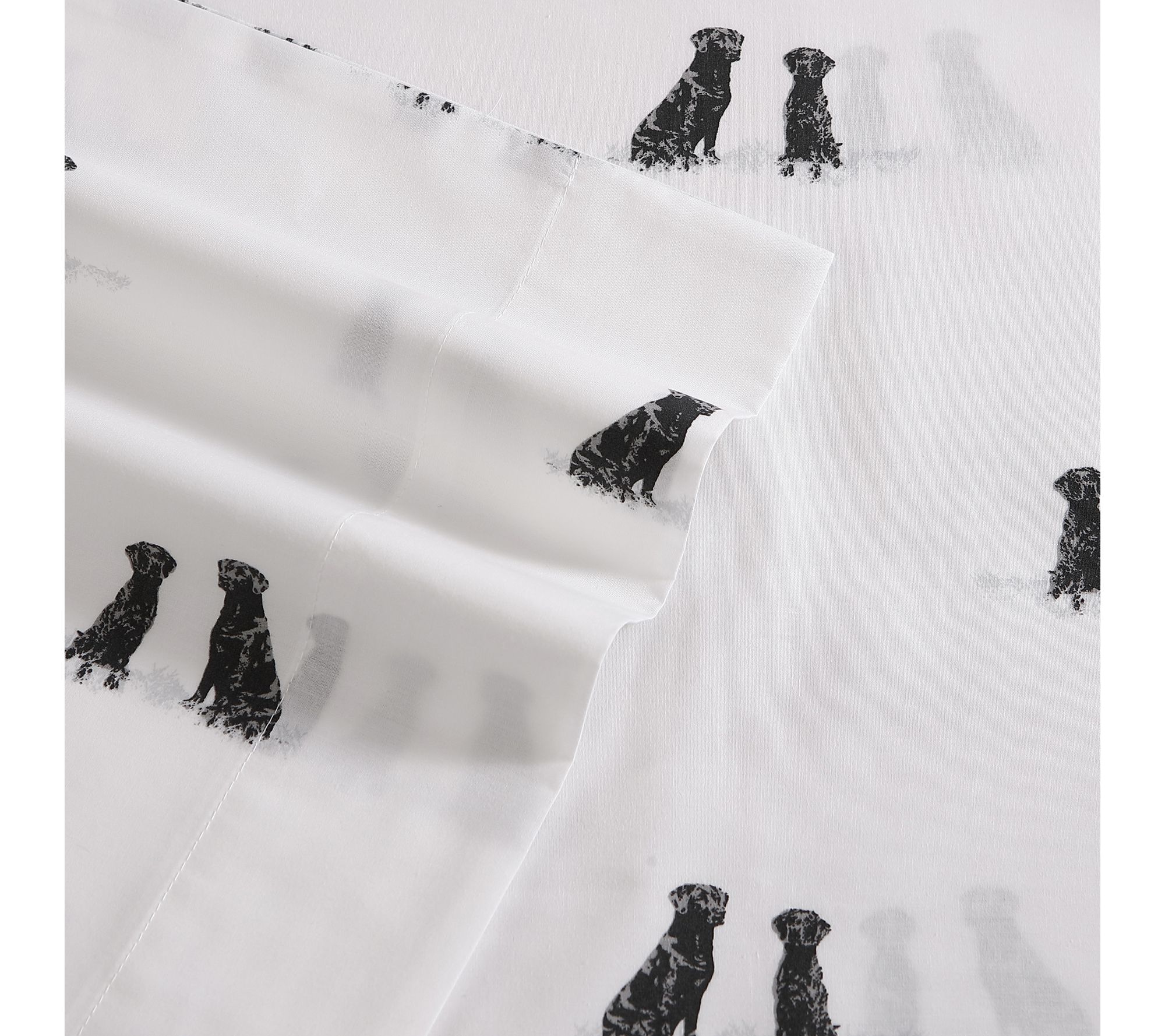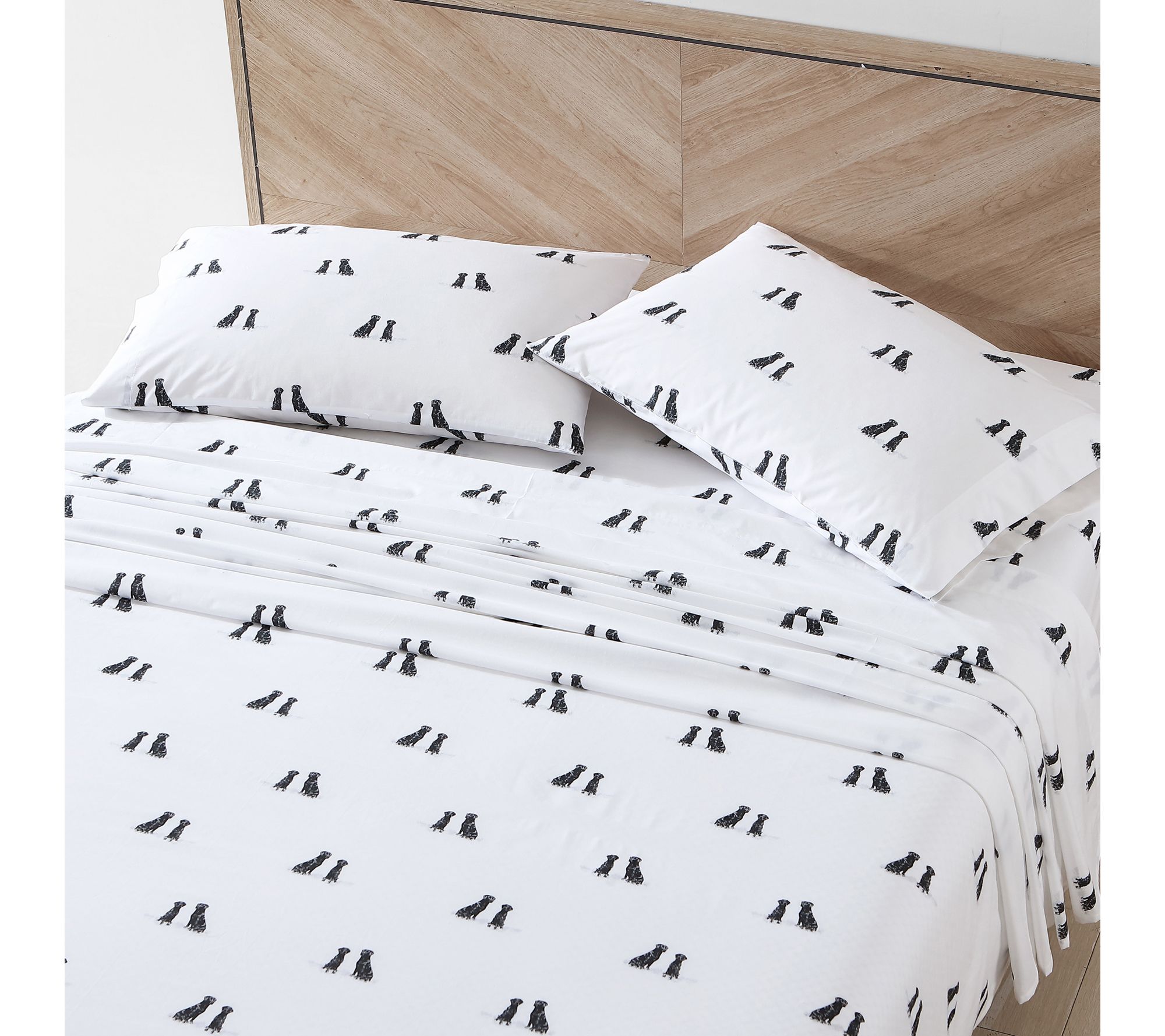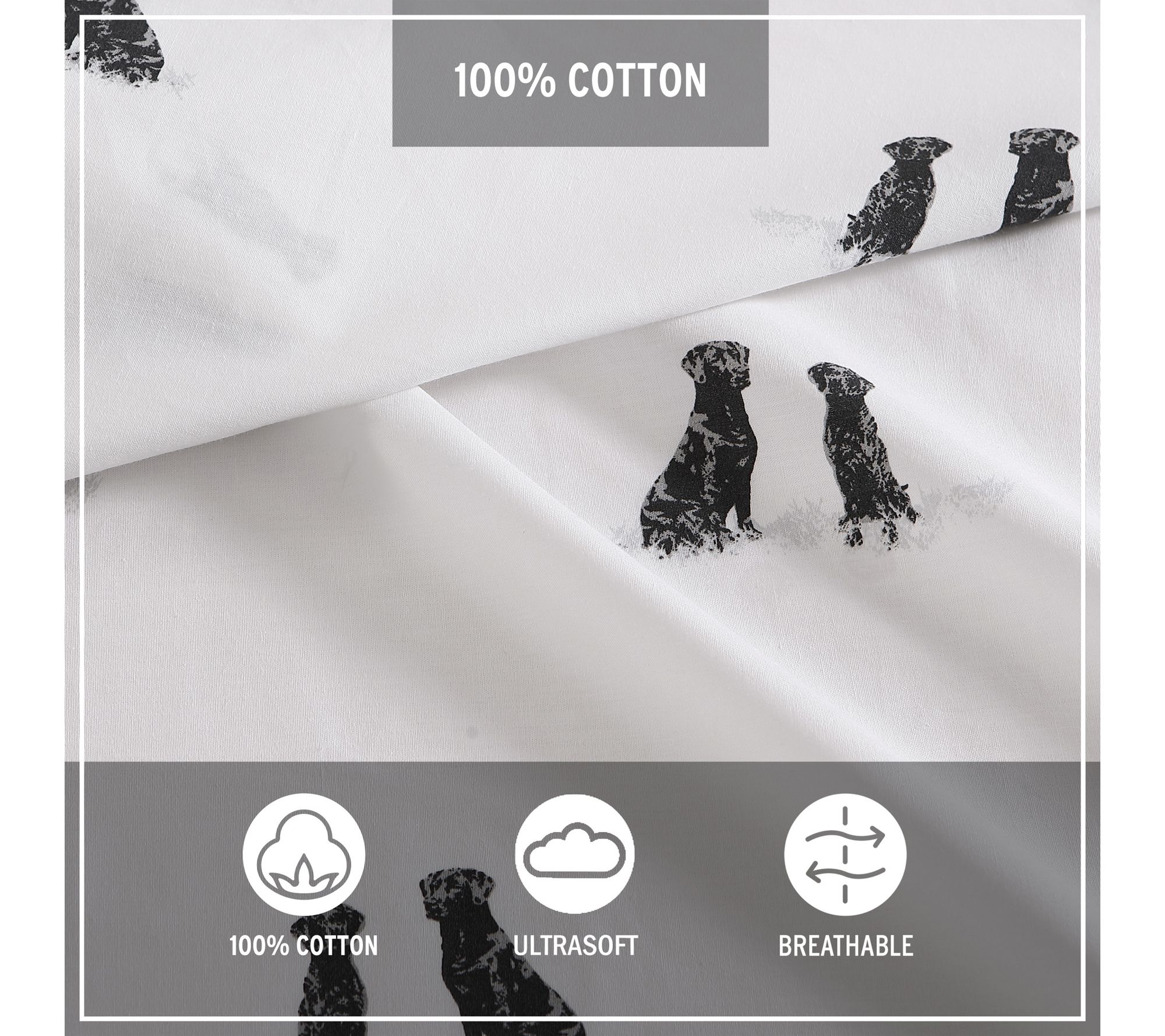 Inject a touch of classic charm into your bedroom with this Eddie Bauer Labrador Fields king sheet set. Crafted from 100% cotton, the crisp percale weave helps provide a comfortable night's sleep, while the matching Labrador-inspired design completes your decor. Perfect for the dog lover's cozy nights. From Eddie Bauer.