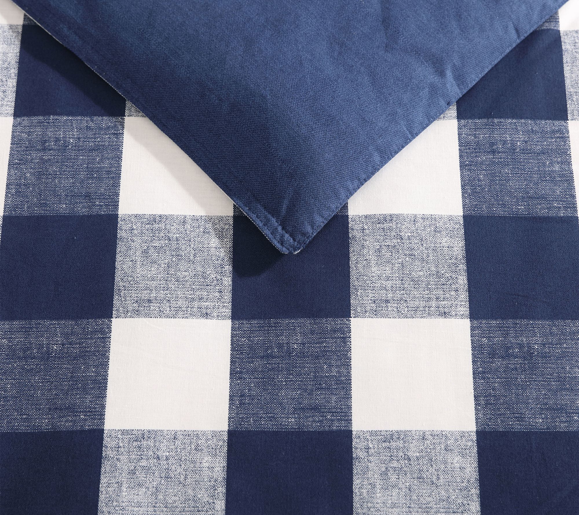 Transform your bedroom into a cozy retreat with the Lakehouse Plaid duvet cover set from Eddie Bauer. Soft cotton in rich indigo and crisp white plaid brings laid-back style, while the solid indigo reverse offers a versatile look. Button closures and inner corner ties keep your insert secure for nightly comfort. From Eddie Bauer.