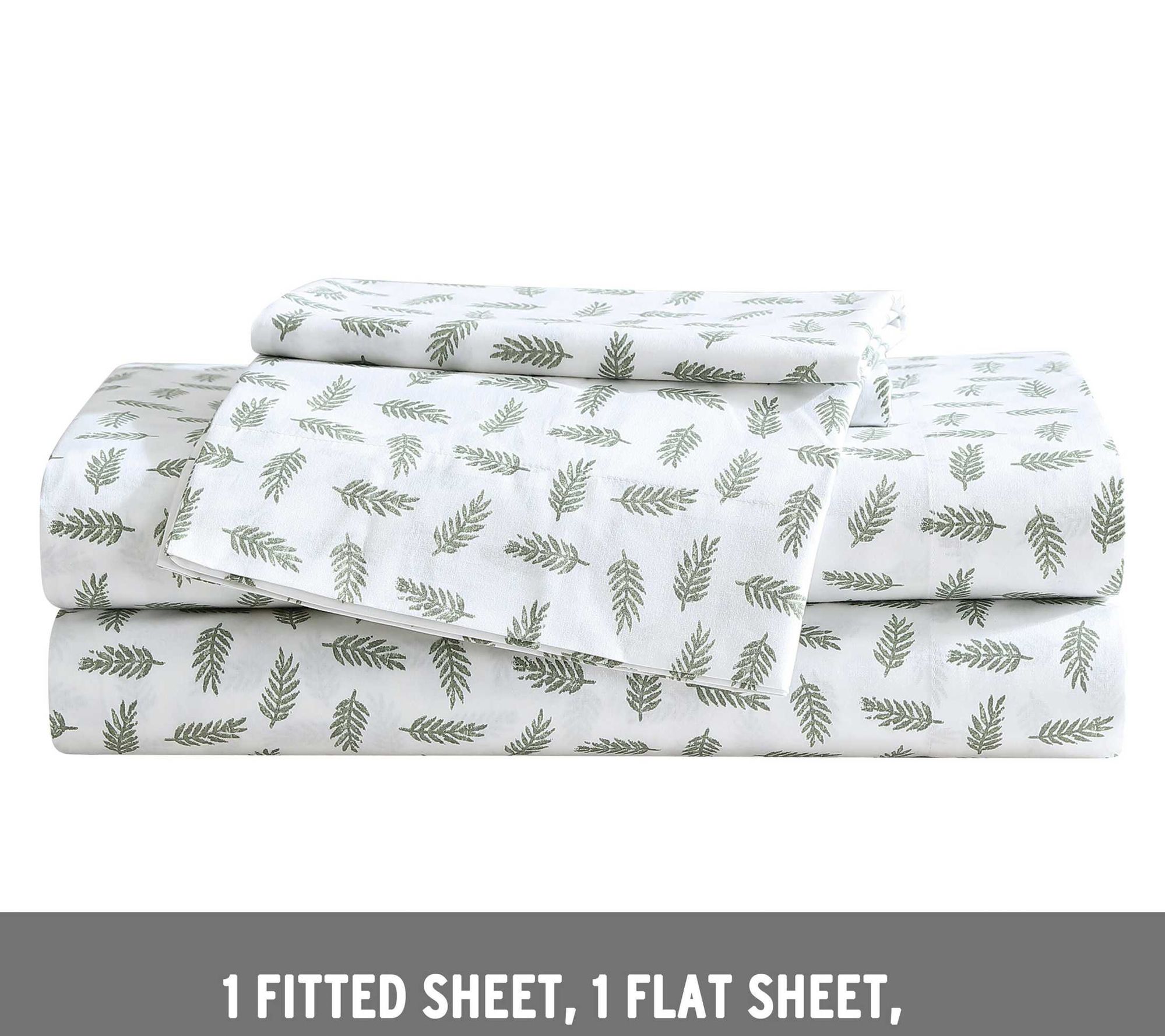 Refresh your bedding with this charming set featuring a delicate laurel leaves pattern against a white and green backdrop. The crisp cotton percale ensures a comfortable night's sleep, while the fully elasticized fitted sheet prevents slipping for a snug fit. From Eddie Bauer.