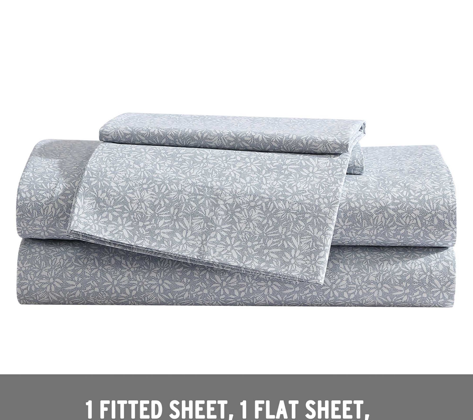 • Includes flat sheet, fitted sheet, and pillowcase