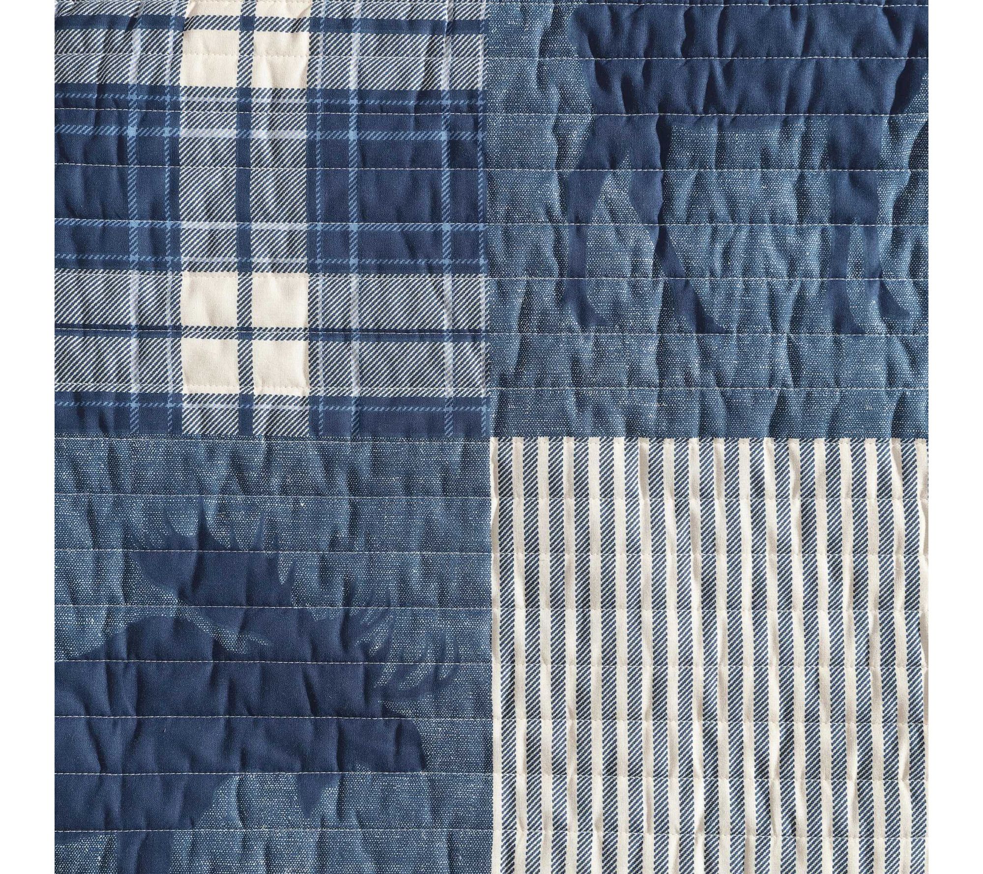 Turn your bedroom into a cozy retreat with this Eddie Bauer Moose Plaid Patchwork Blue Cotton Quilt Set. Blending classic rustic charm and everyday comfort, this versatile bedding is prewashed for softness and features a reversible design to effortlessly refresh your space -- ideal for year-round use, whether on its own or layered for added warmth. From Eddie Bauer.