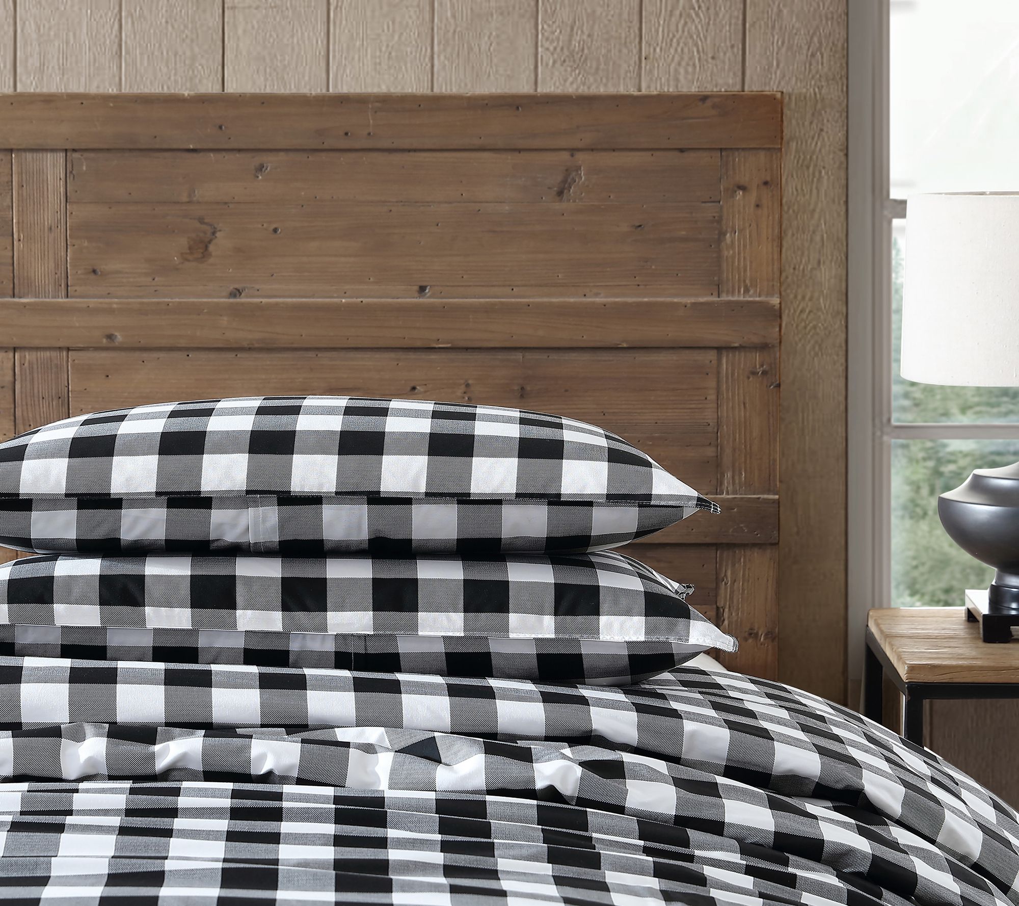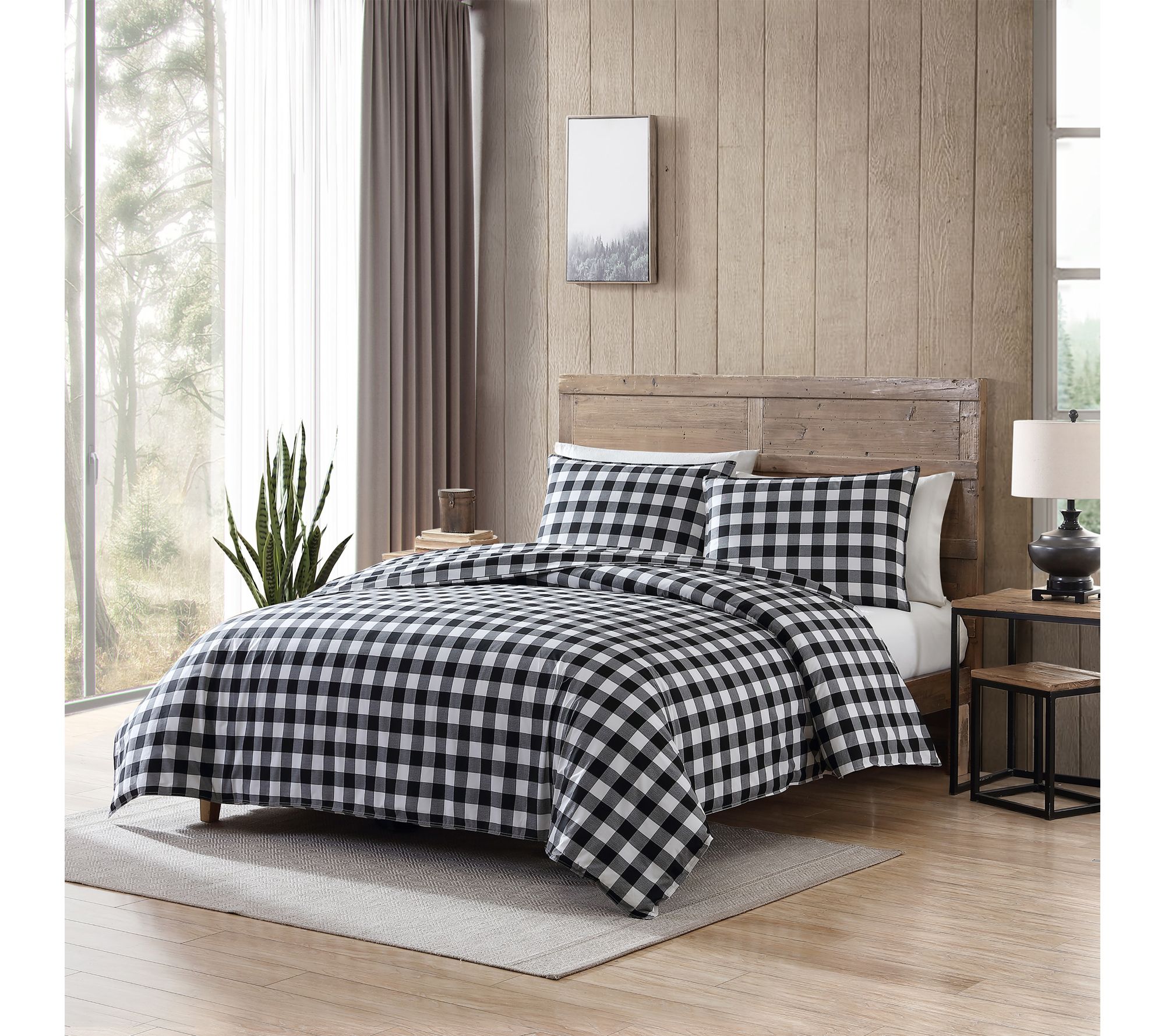 Bring cozy cabin vibes to your bedroom with this Mountain Plaid duvet cover set from Eddie Bauer. The cotton cover highlights a bold black and white plaid pattern and reverses for two stylish looks, while inner corner ties help keep your insert secure. Toss it in the wash whenever you need a refresh and pair with your favorite sheets for a comfortable retreat. From Eddie Bauer.