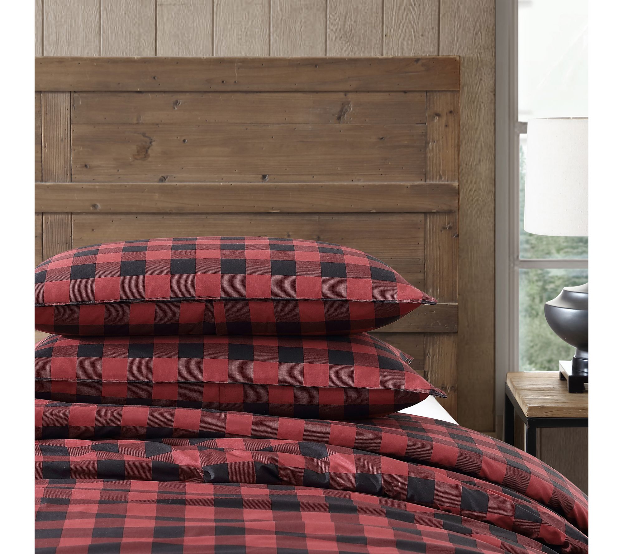 Wrap your bedroom in cozy style with this plaid duvet cover set, inspired by the warmth and charm of a rustic mountain cabin. The soft cotton material provides inviting comfort, making it easy to unwind after a long day. Create a retreat you'll love to escape to night after night. From Eddie Bauer.