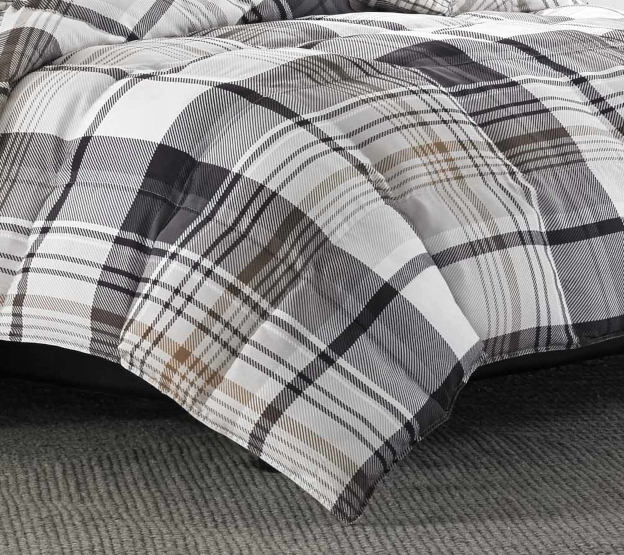 Stay cozy all night with the softness of brushed microsuede and the classic charm of a plaid comforter set. Its bold pattern and neutral colors blend seamlessly into both rustic cabins and sleek city apartments, adding warmth and inviting style wherever you rest. From Eddie Bauer.