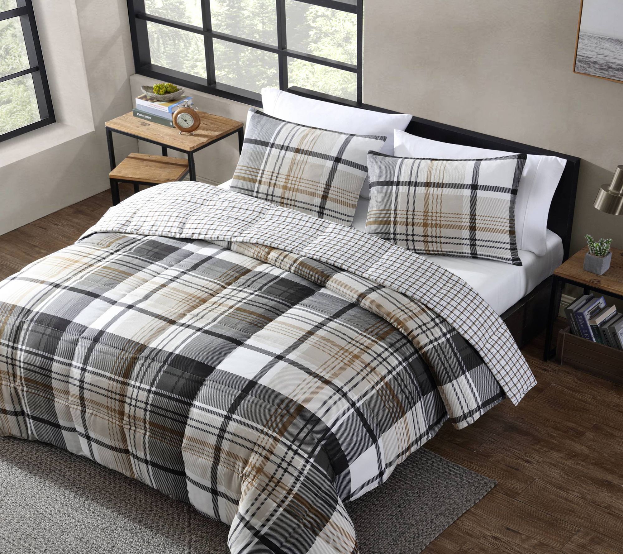 Coordinating classic style with cozy comfort, this plaid comforter set transforms any bedroom into a welcoming retreat. The brushed microsuede gives it a soft, silky feel while creating extra warmth for those chilly nights. Its sophisticated neutral tones blend easily with rustic and modern decor alike. From Eddie Bauer.