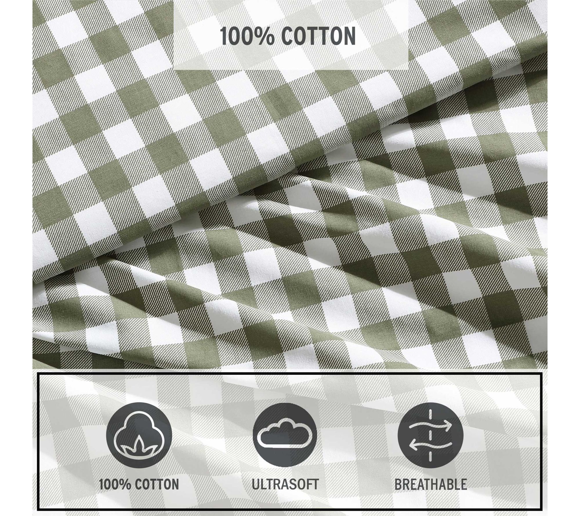 Eddie Bauer Preston Check Green Cotton PercaleFull Sheet Set