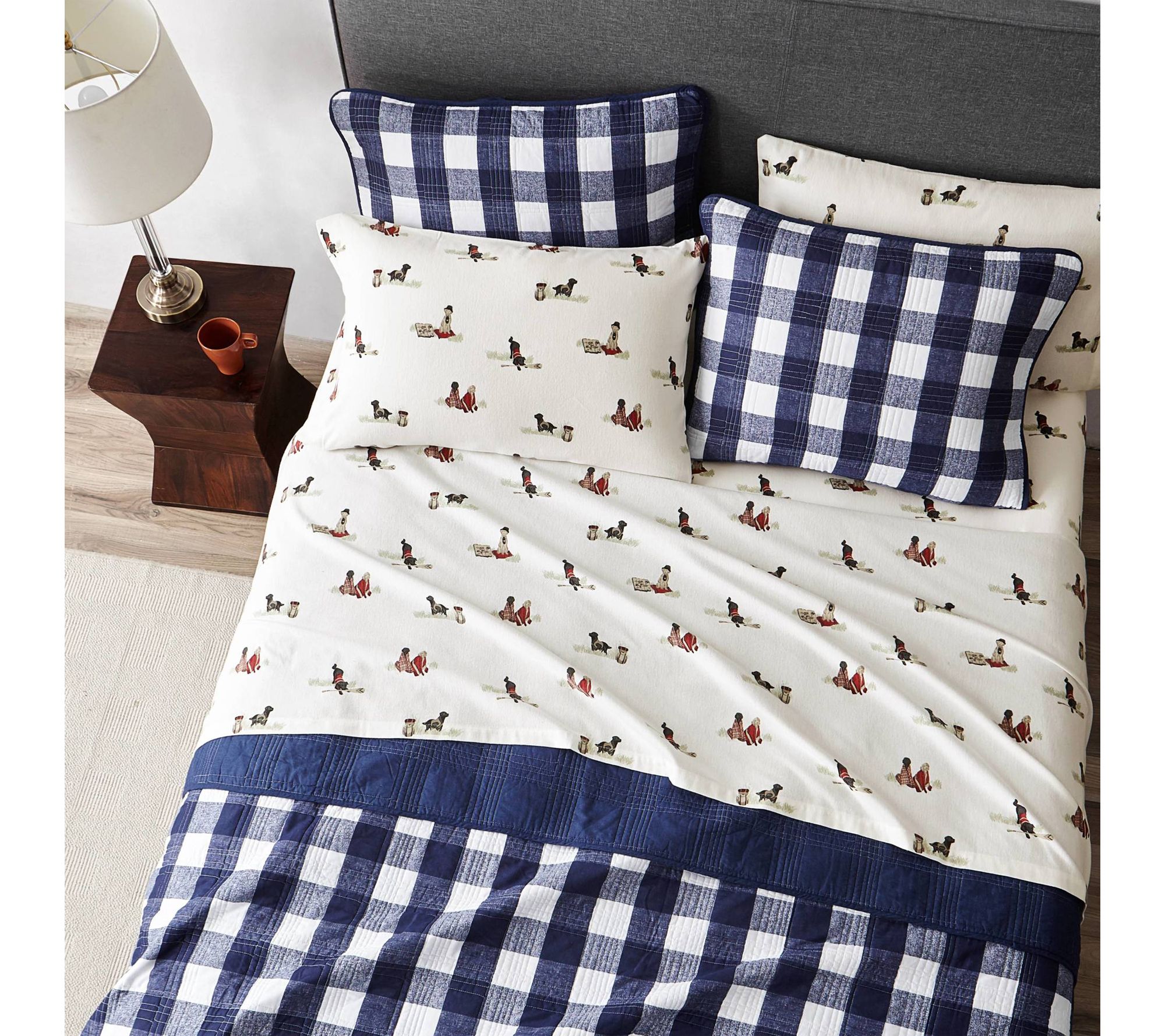 Settle in for a restful night with this cotton sheet set, featuring a cozy brushed texture that feels inviting on chilly evenings. Designed to fit snugly and stay in place, these sheets add a hint of adventure-inspired style to your bedroom while softening beautifully with every wash. From Eddie Bauer.
